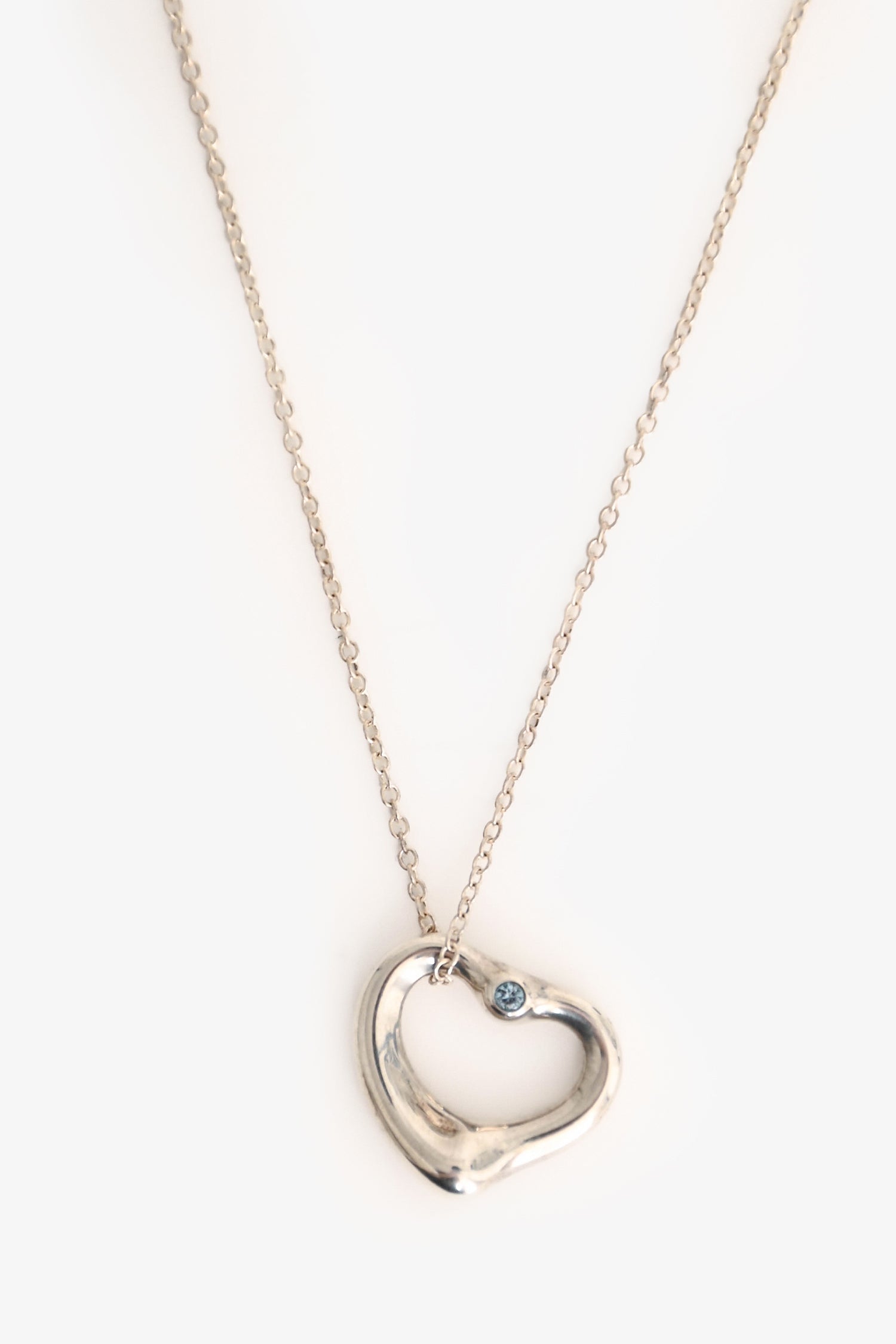 Tiffany & Co. By Elsa Peretti Sterling Silver Gemstone Set Open Heart Pendant Necklace