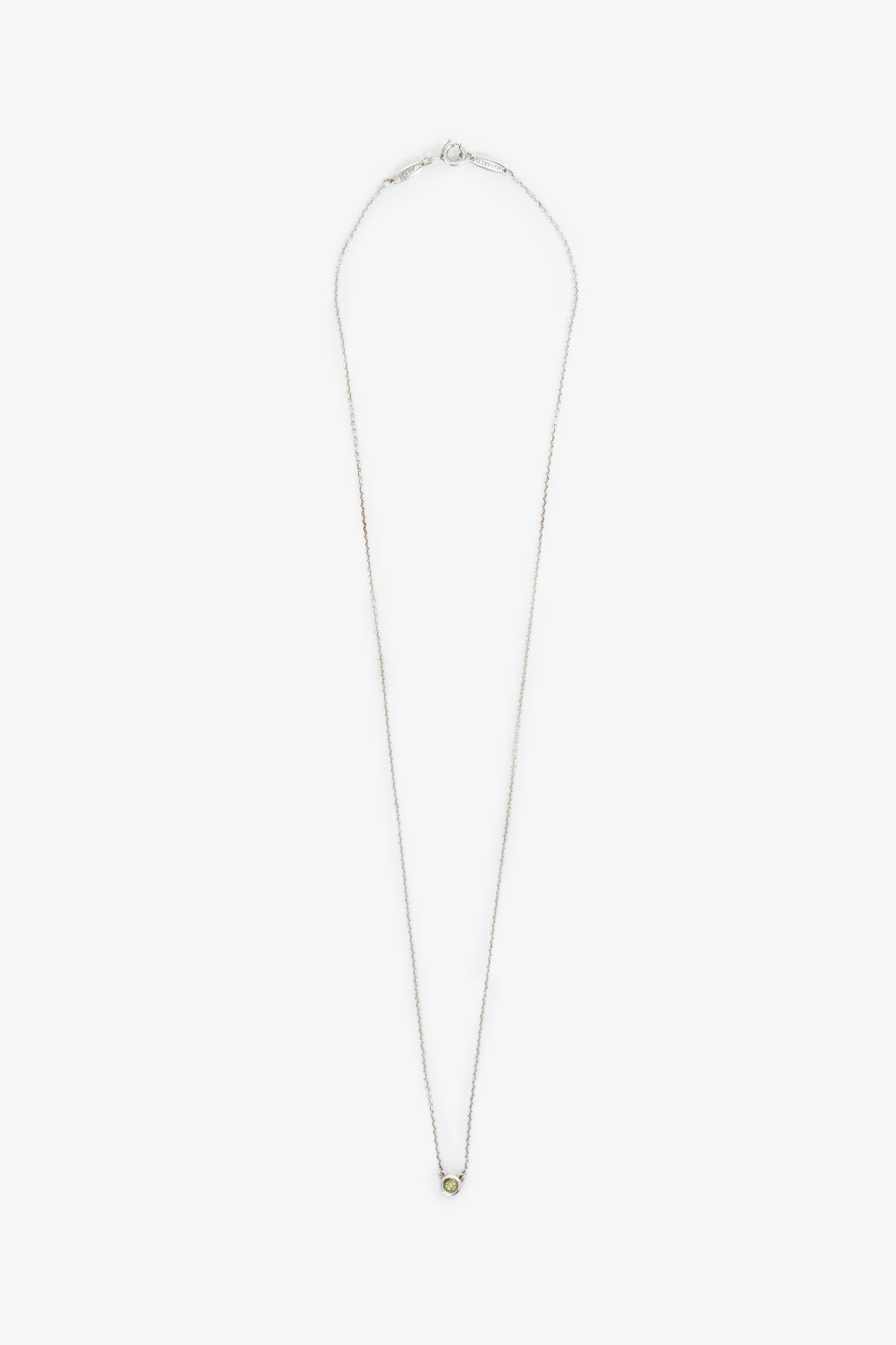 Tiffany & Co. Sterling Silver Single Green Diamonds by the Yard Necklace. Spring ring closure.