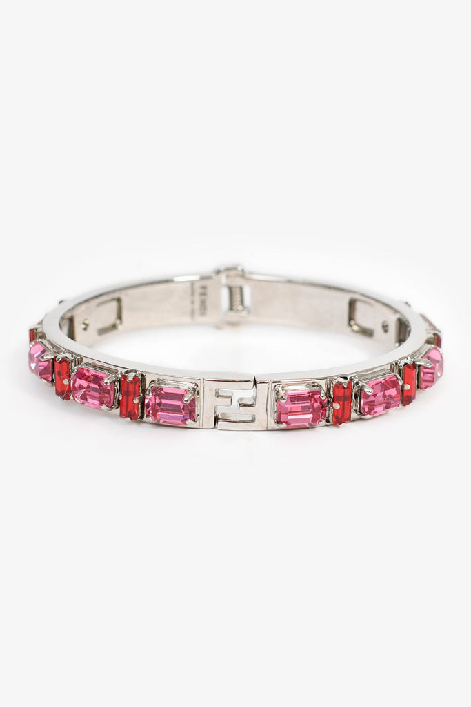 Fendi Silver Toned Red/Pink Crystal Bracelet