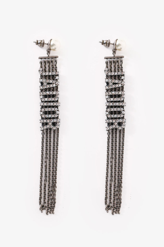 Christian Dior Silver Tone Metal/Faux Pearl/Crystal Embellished J'ADior Ear Pendants