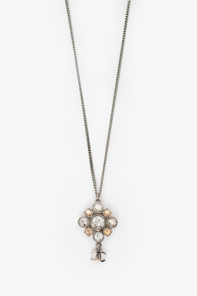 Chanel™ 2012 Silver Toned Crystal Drop CC Pendant Necklace