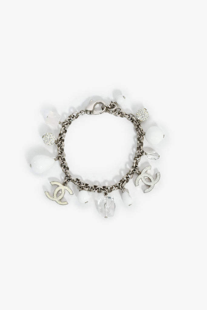 Chanel™ 2010 Silver Tone/White Enamel CC Charm Bracelet