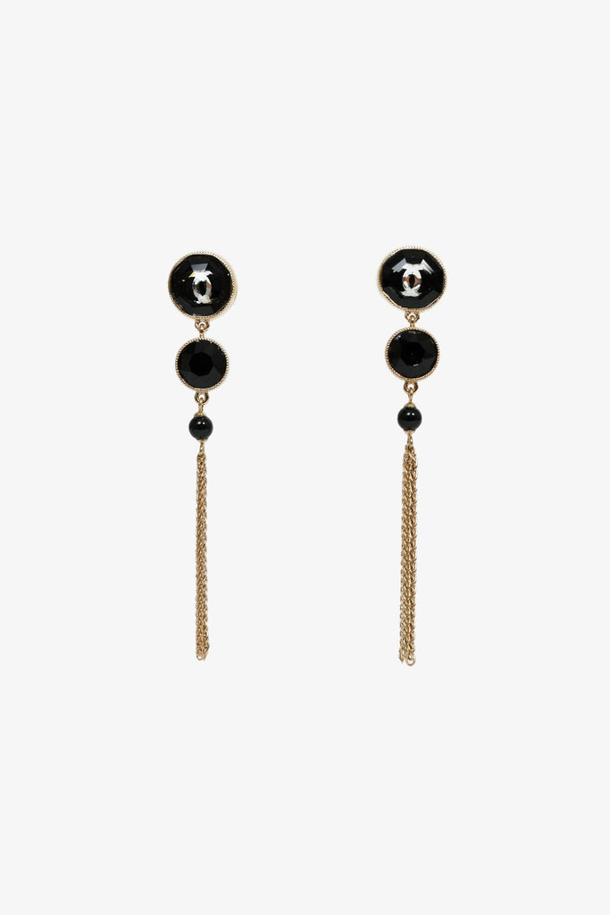 Chanel™ 2018 Gold Toned Black Double Crystal CC Dangle Earrings