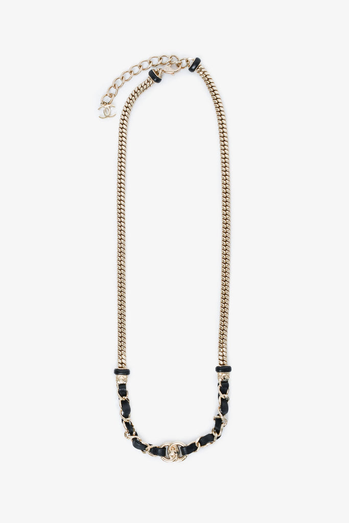 Chanel™ 2021 Silver Tone/Black Leather Necklace