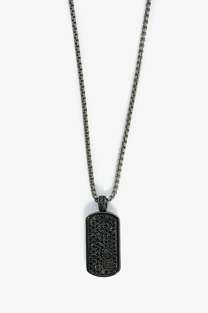 David Yurman Black Titanium/Sterling Silver & Black Diamond 18mm Chevron Tag Pendant + 21" Sterling Silver Box Chain Necklace