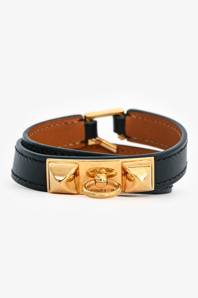 Hermès Black Leather 'Rivale' Double Tour Bracelet