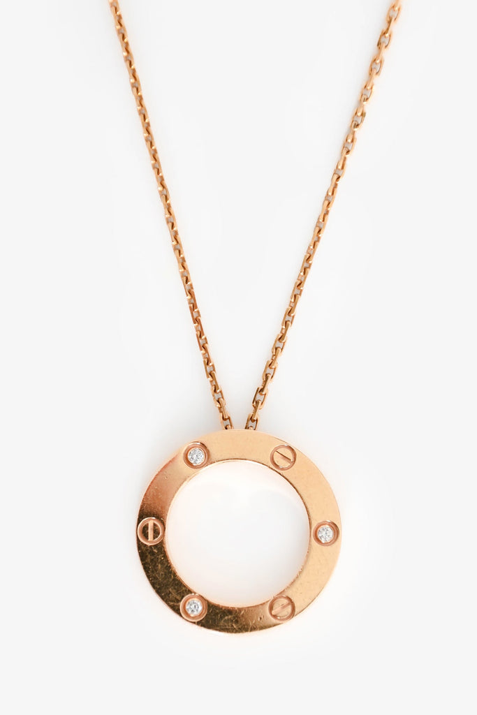 Cartier 18K Yellow Gold 3 Diamond Set Love Pendant Necklace