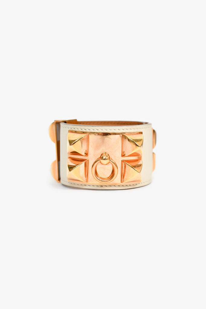 Hermes 2015 White Leather Gold Tone 'Collier de Chien' Bracelet