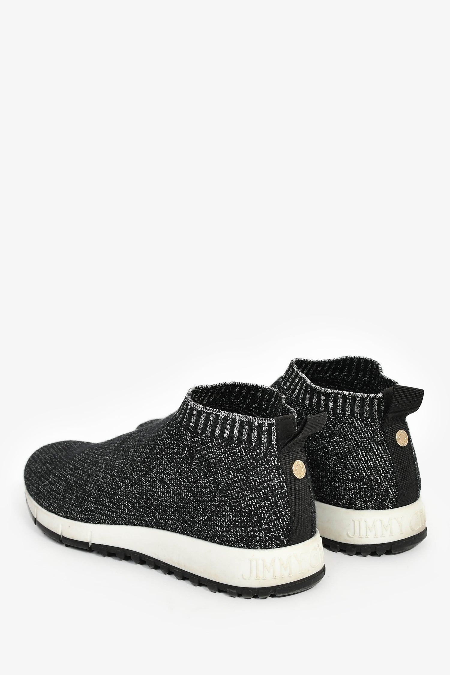 Jimmy Choo Black/Metallic Shimmer Crochet Knit Rubber Sole Sneakers Size 37