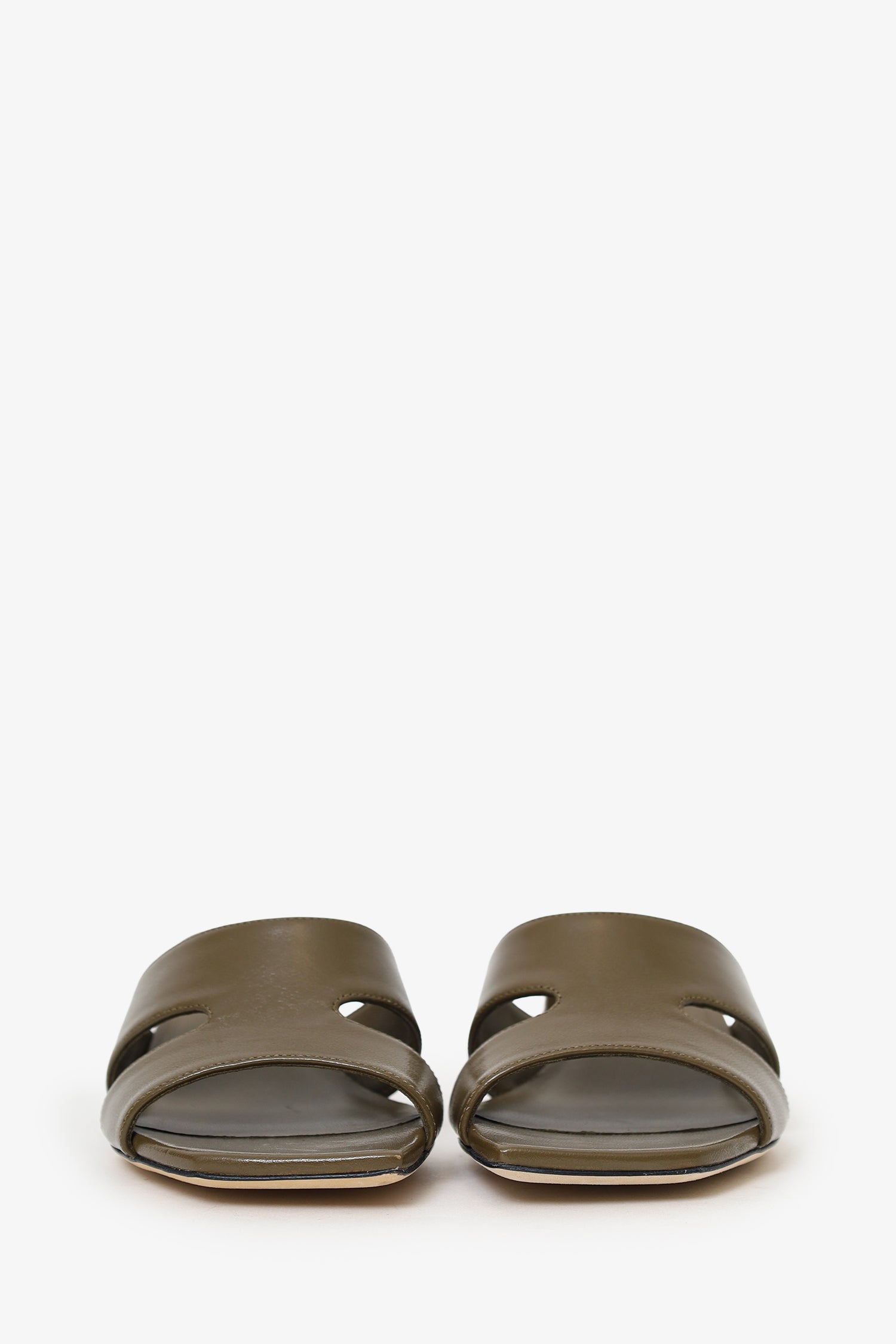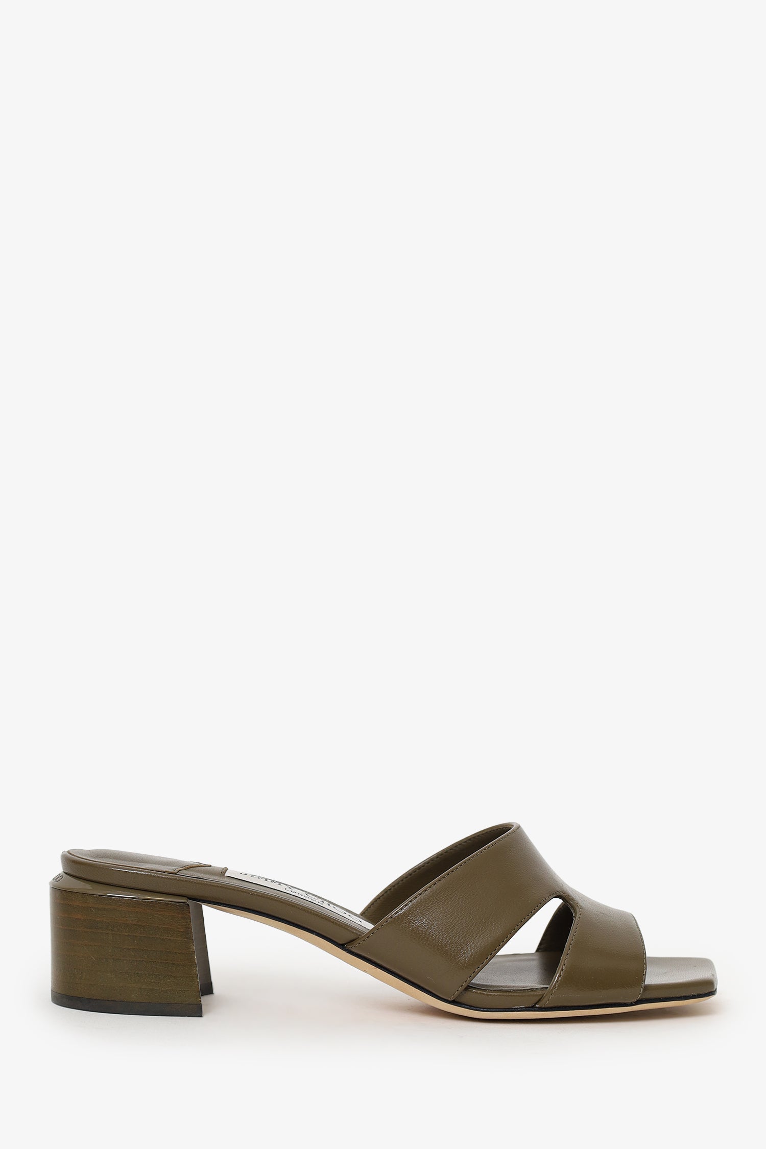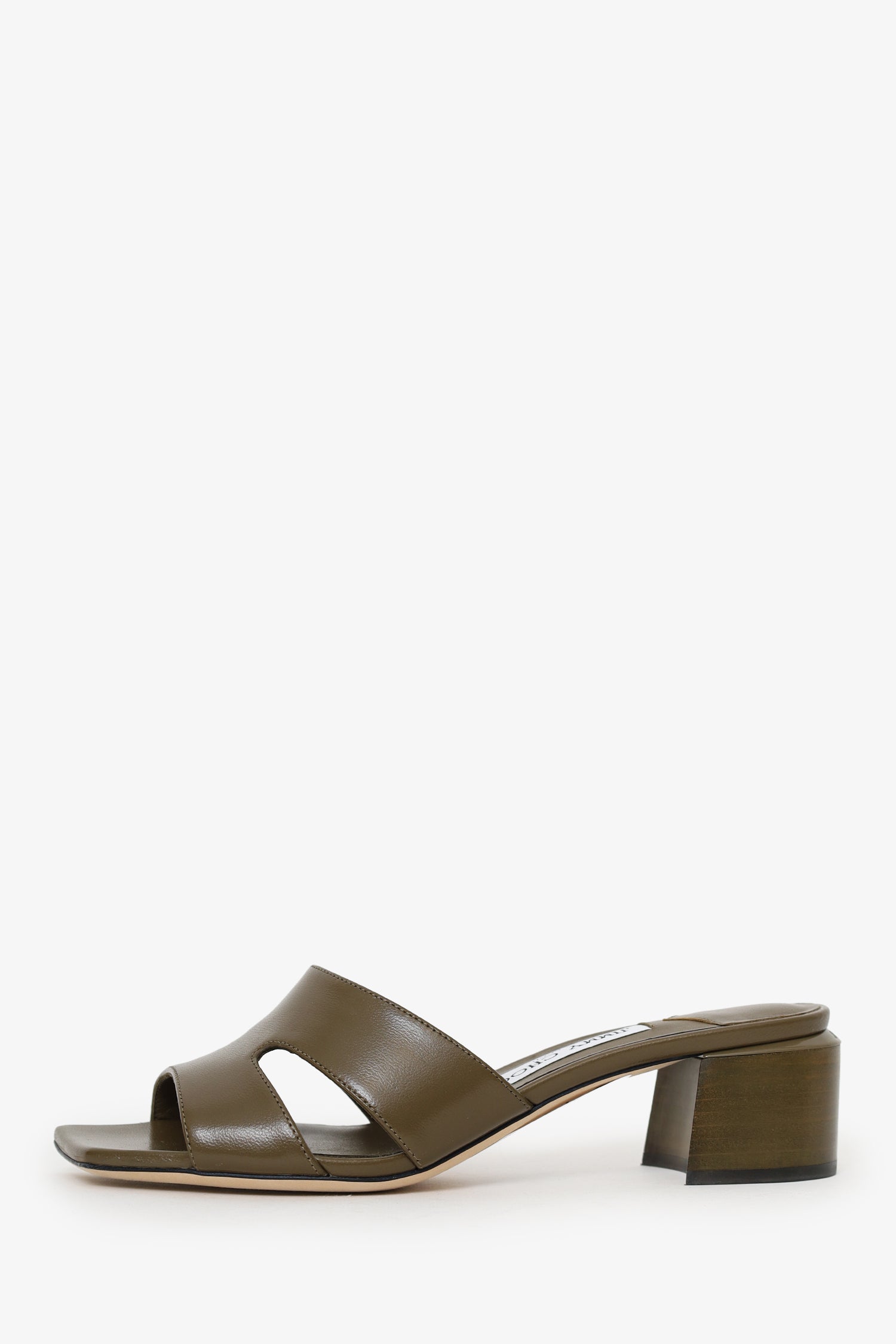 Jimmy Choo Khaki Green Leather Ellison Block Heel Mules Size 36