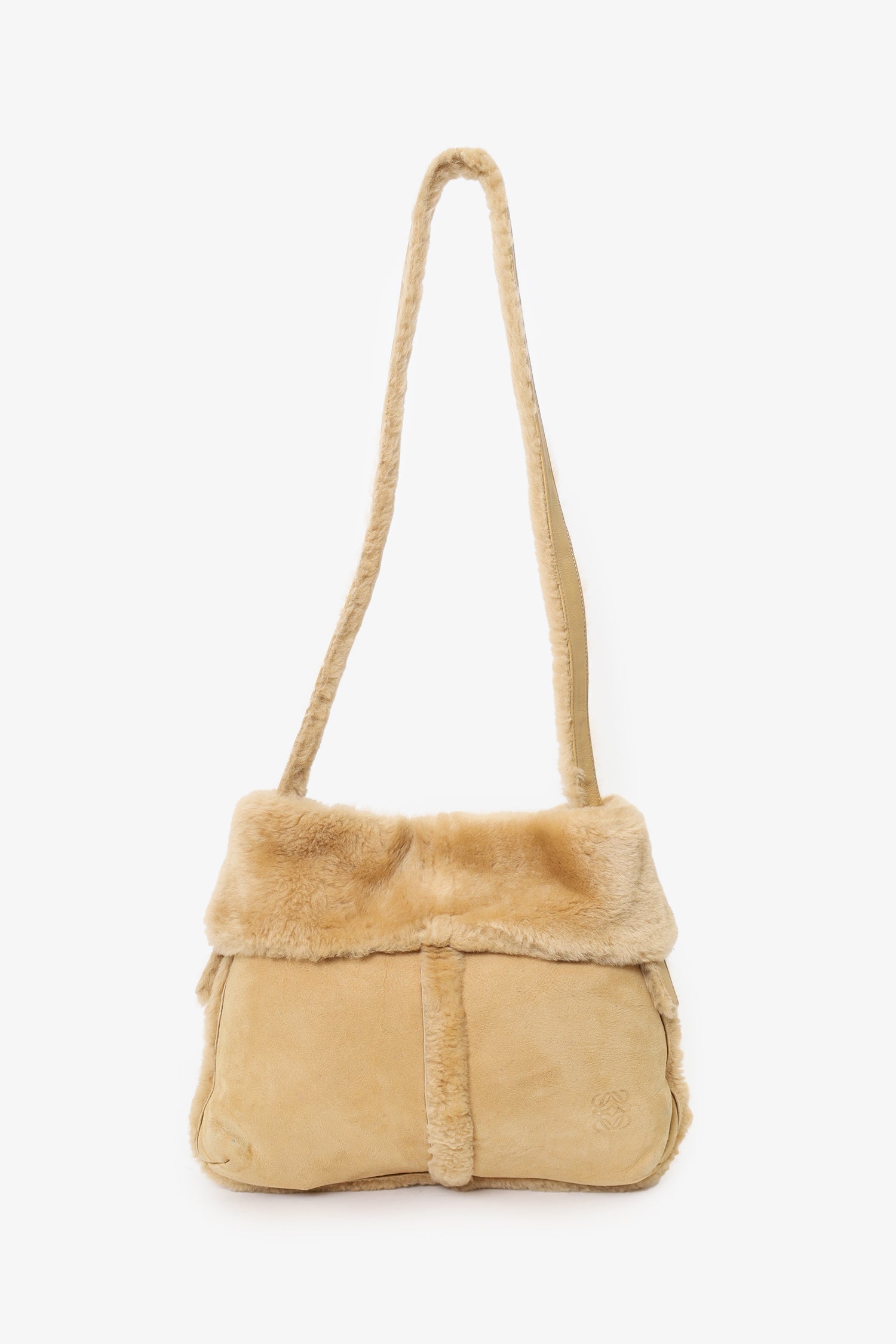 Loewe Beige Suede Shearling Boa Crossbody
