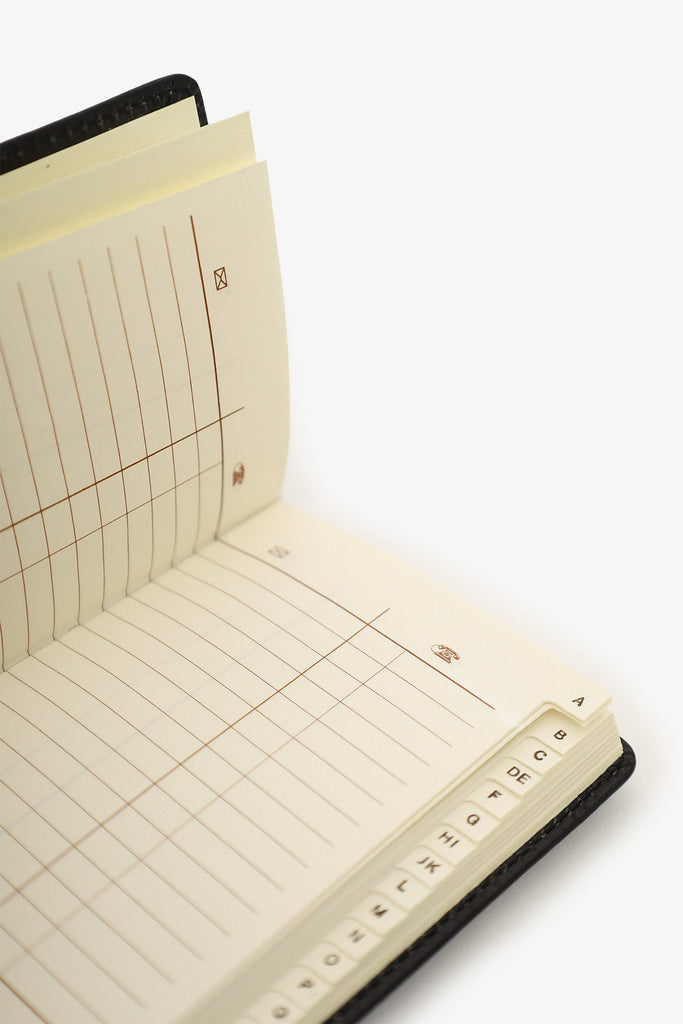 Loewe Black Leather Phone Book. Lined 3 column paper pages. Tonal stitching.