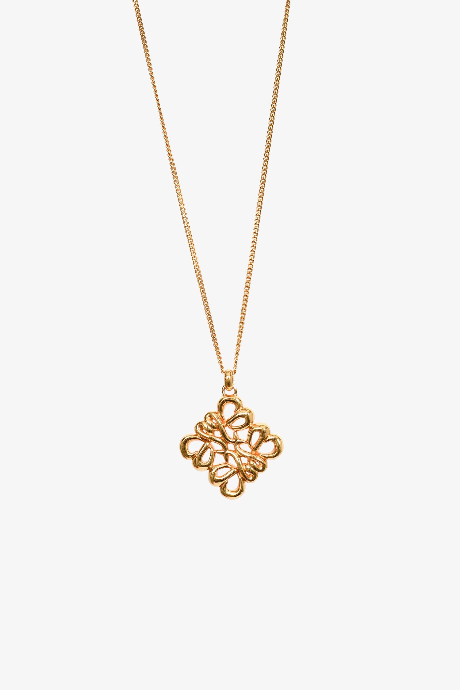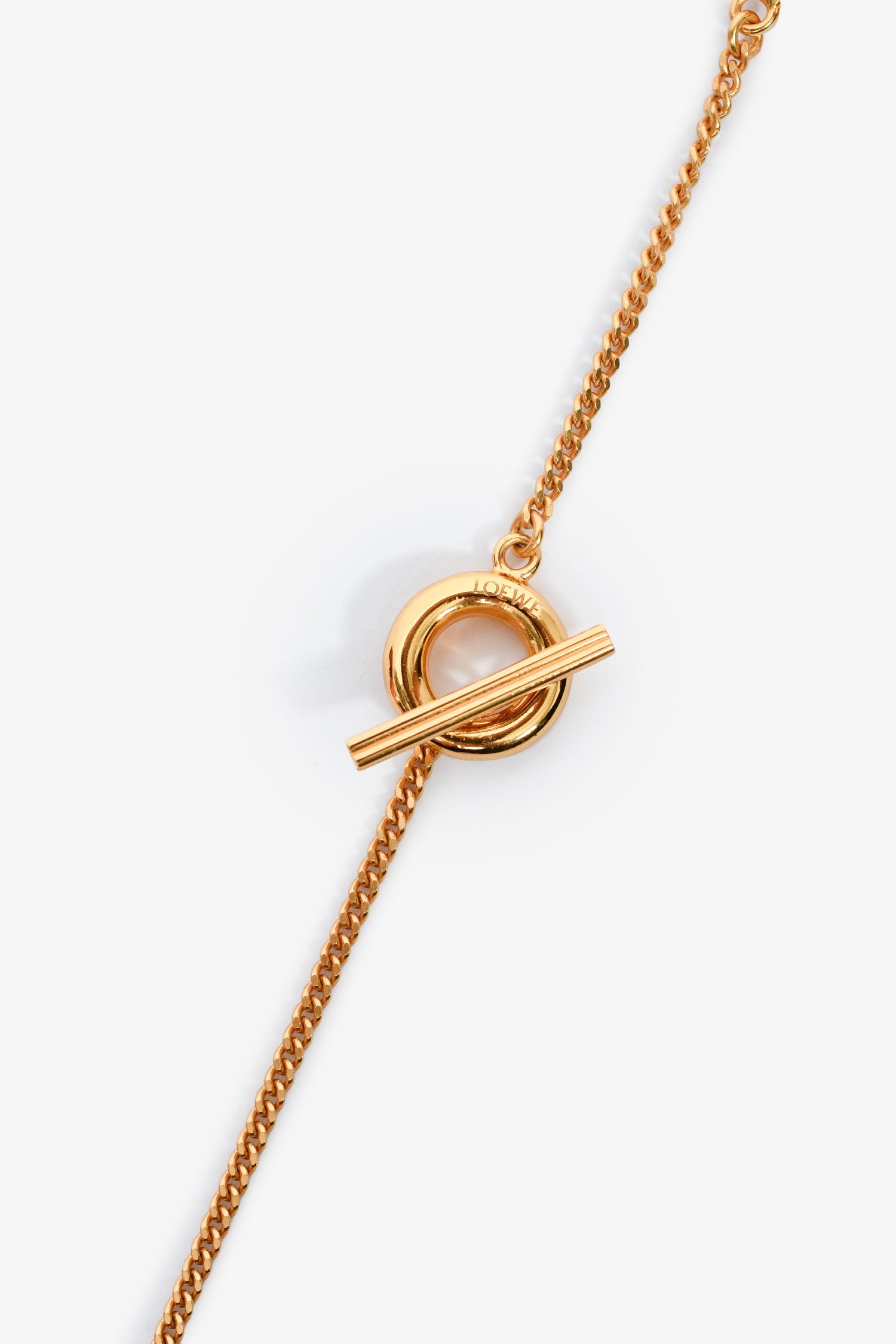 Loewe Gold Tone Anagram Pendant Necklace. Bar and circle closure.