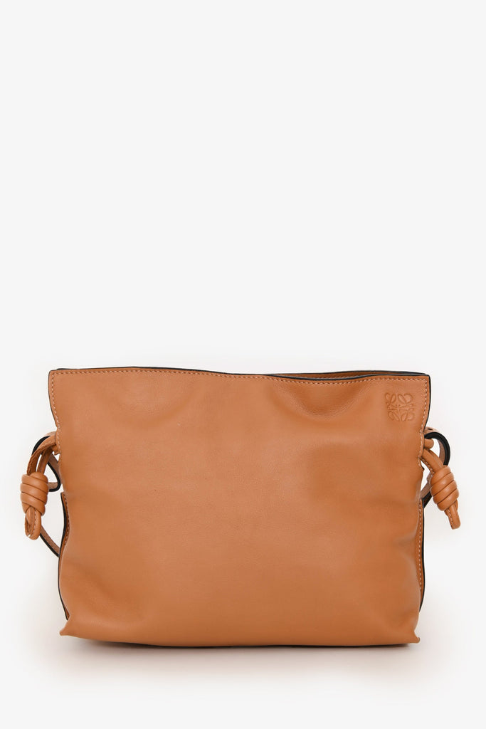 Loewe 2024 Brown Leather Mini Flamenco Clutch with Strap + Woven Spiral Strap