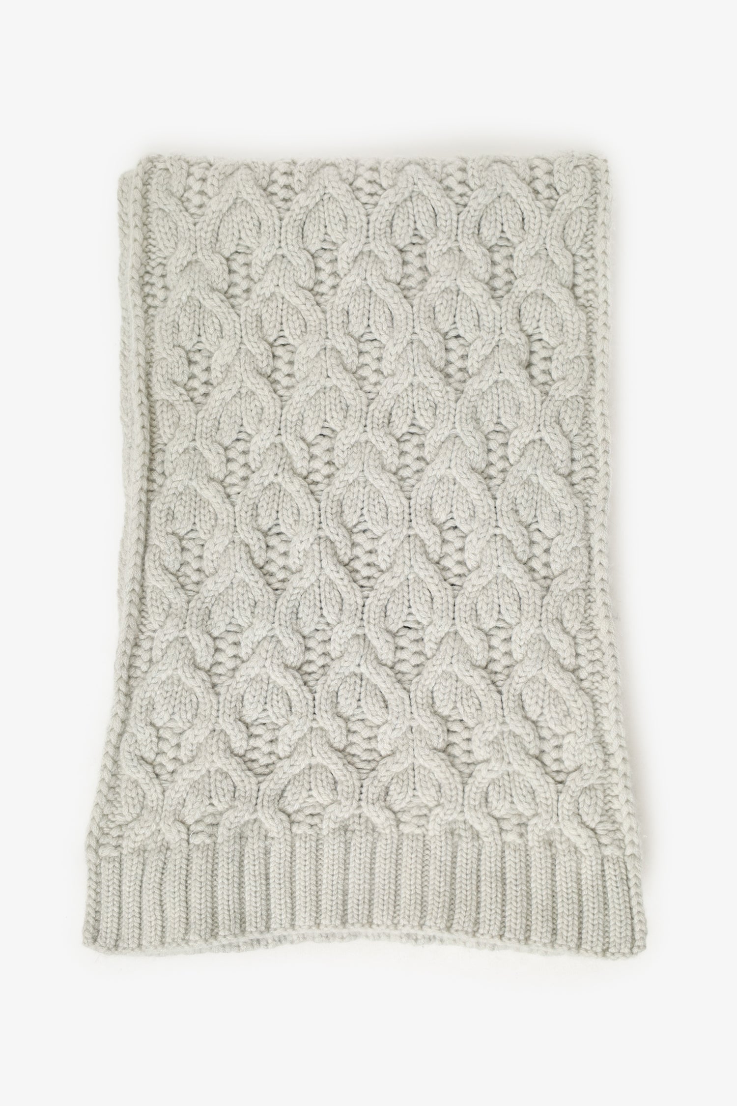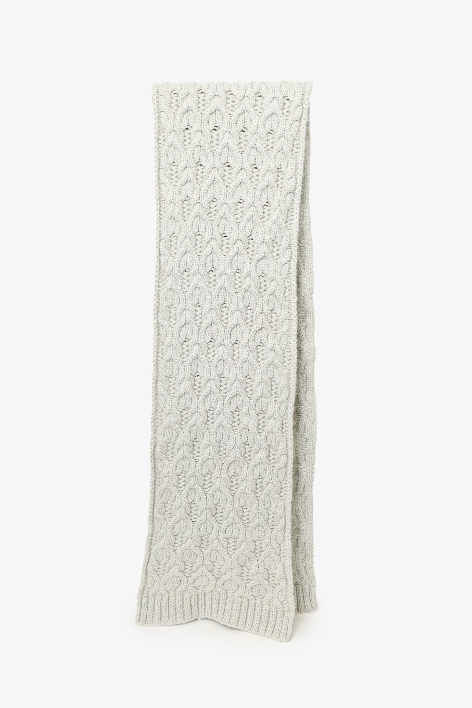 Loro Piana Grey Baby Cashmere Knitted Scarf. Tonal stitching.