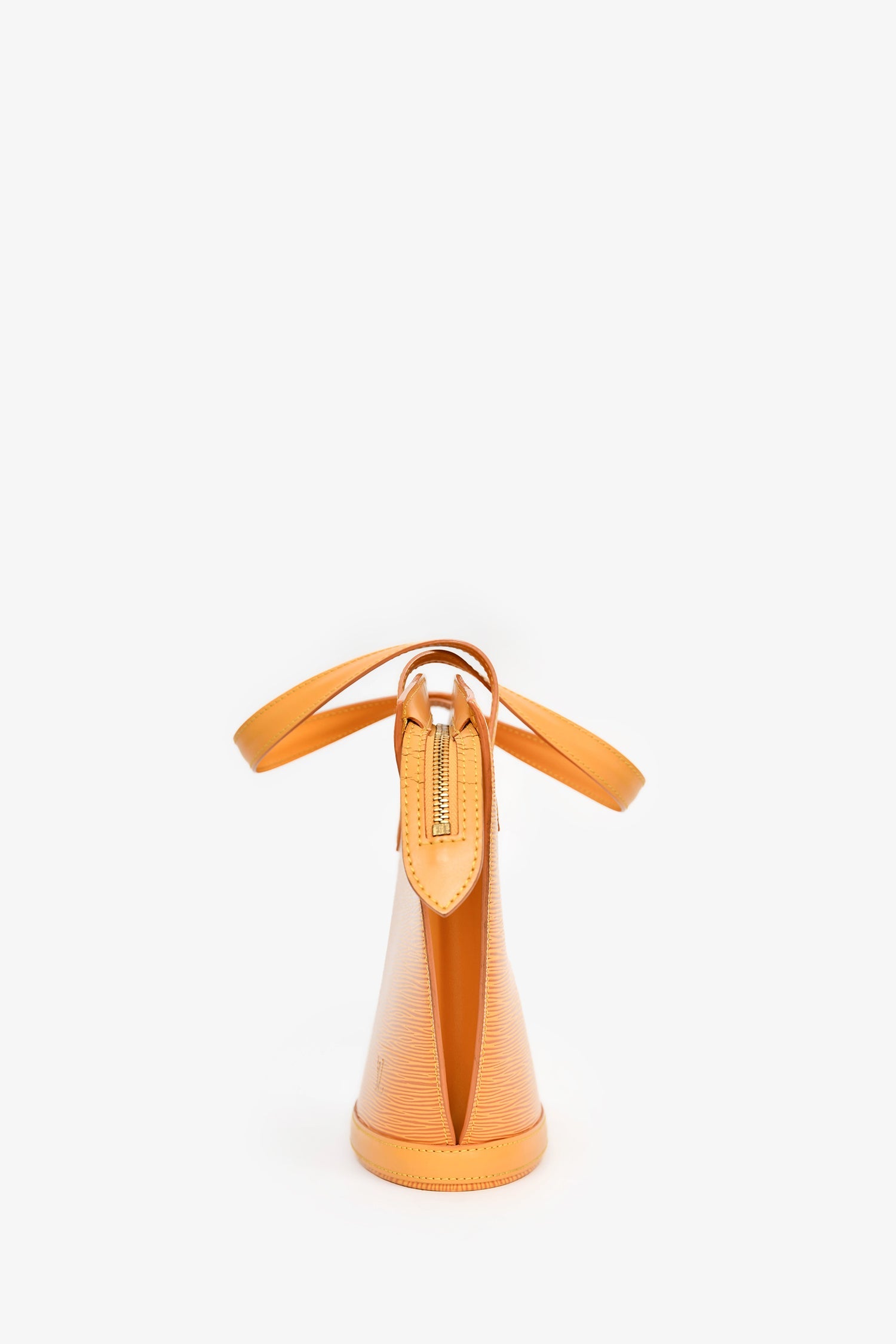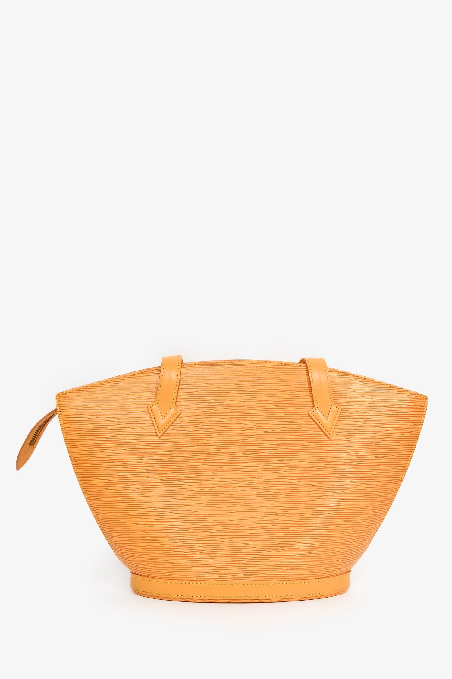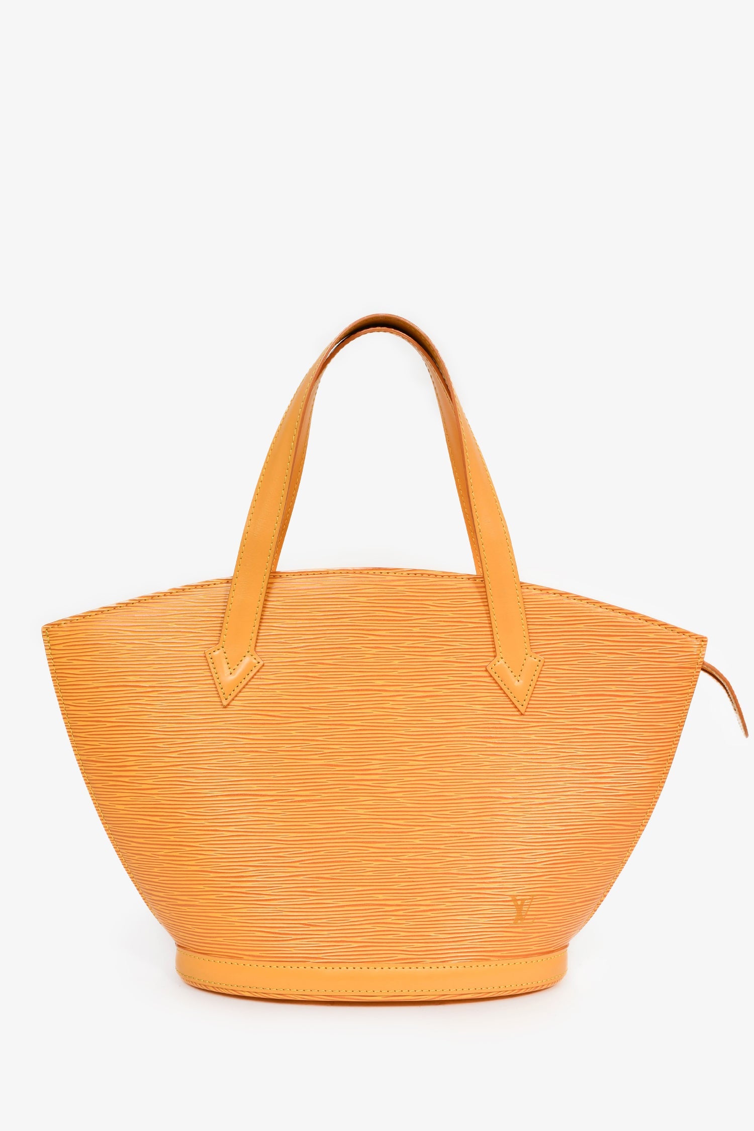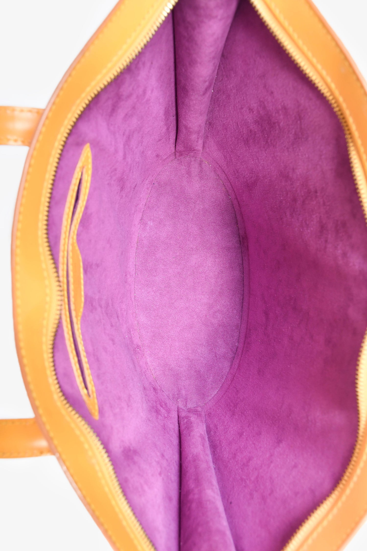 Louis Vuitton 1995 Yellow Epi 'Saint Jacques' Top Handle Bag. Top zip closure. Dual handles. Suede-lined interior. Single interior wall slip pocket. Gold-tone hardware. Tonal stitching.