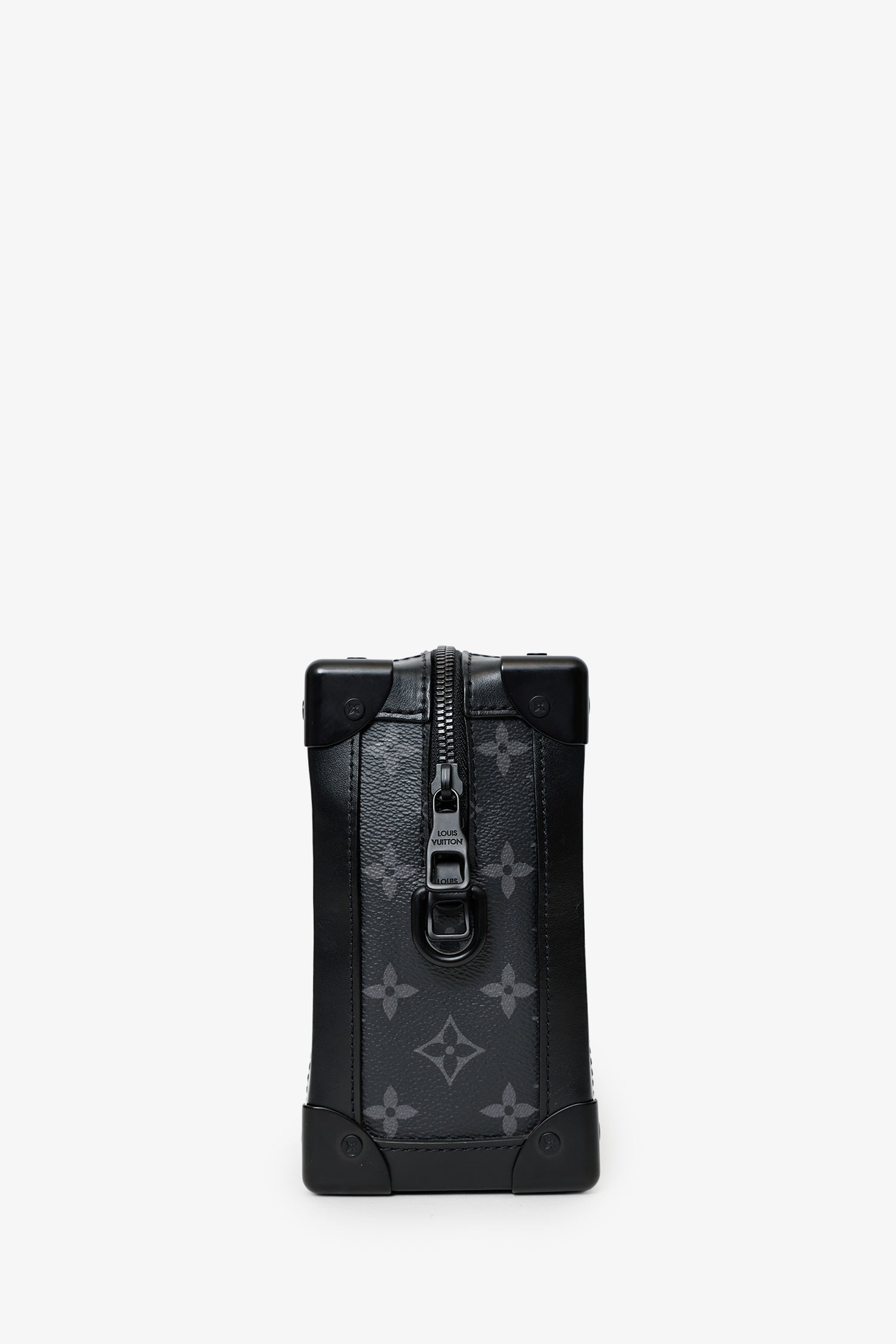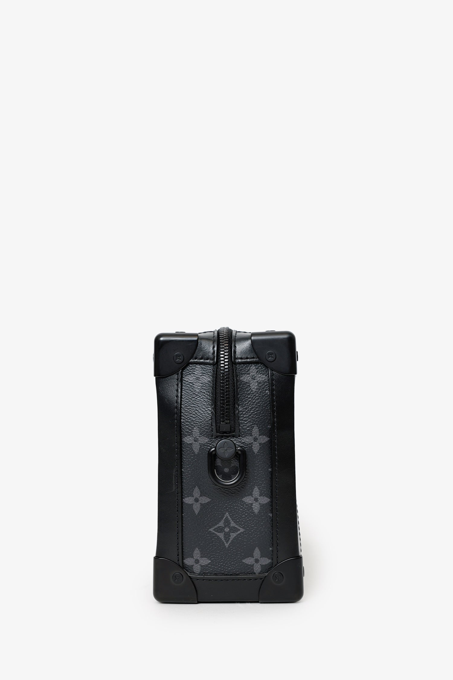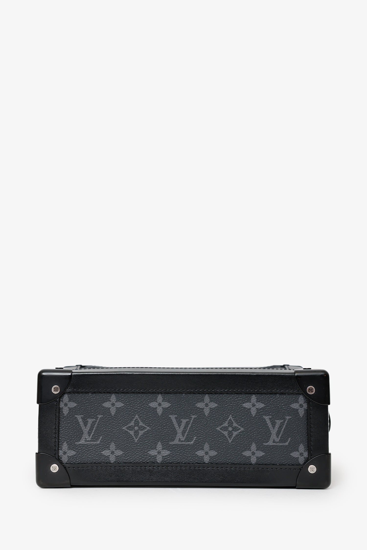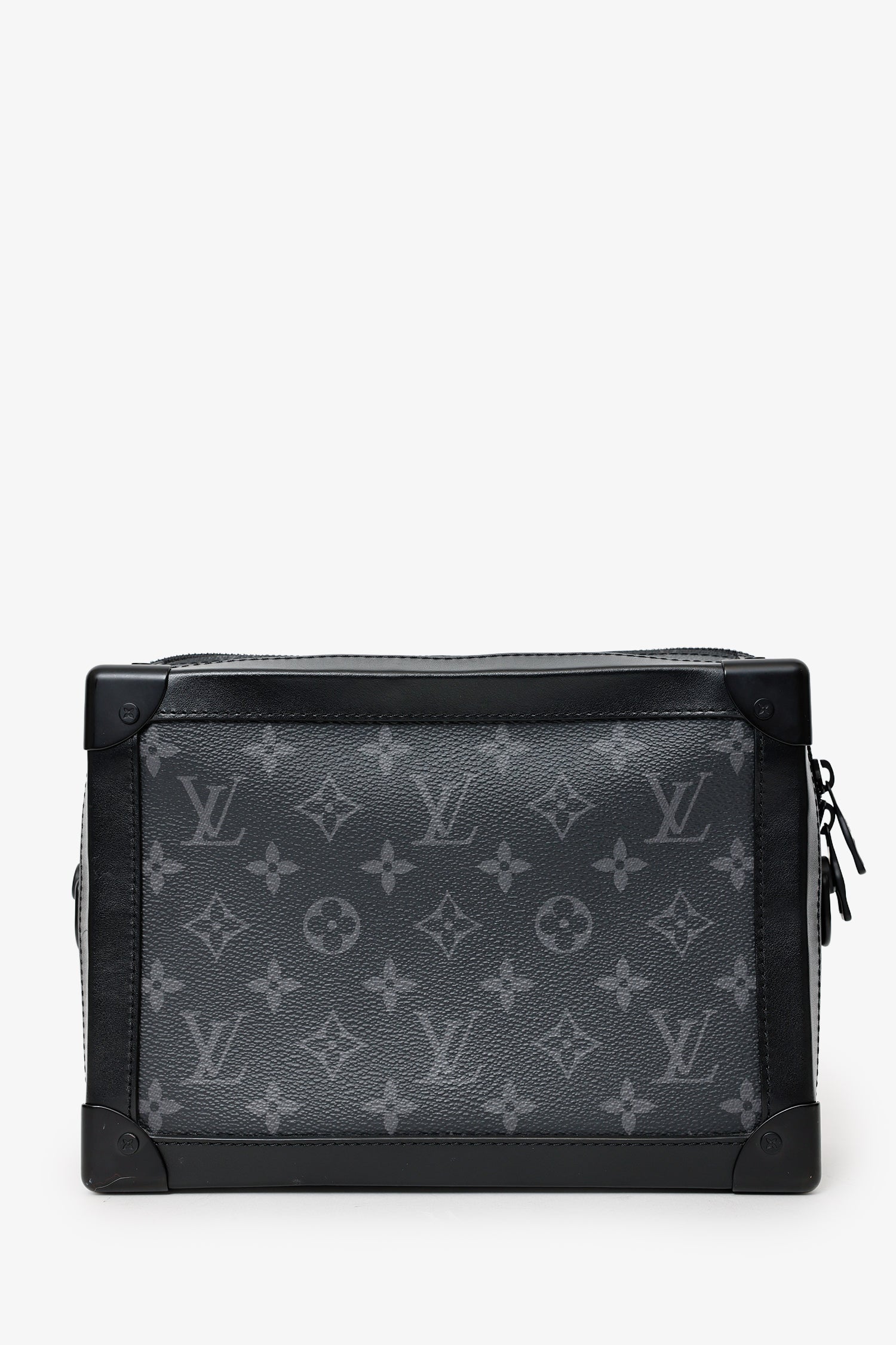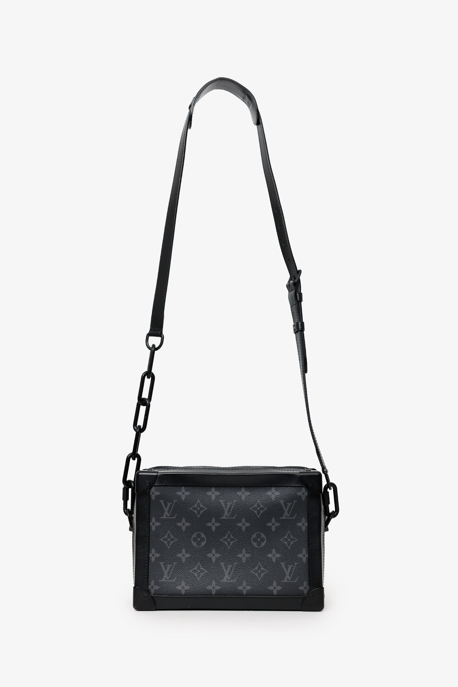 Louis Vuitton 2019 Monogram Eclipse Soft Trunk Bag. Top zip closure. Removable and adjustable push-pin buckle closure crossbody strap with clasp closure. Lined open interior. Silver-tone hardware. Tonal stitching.