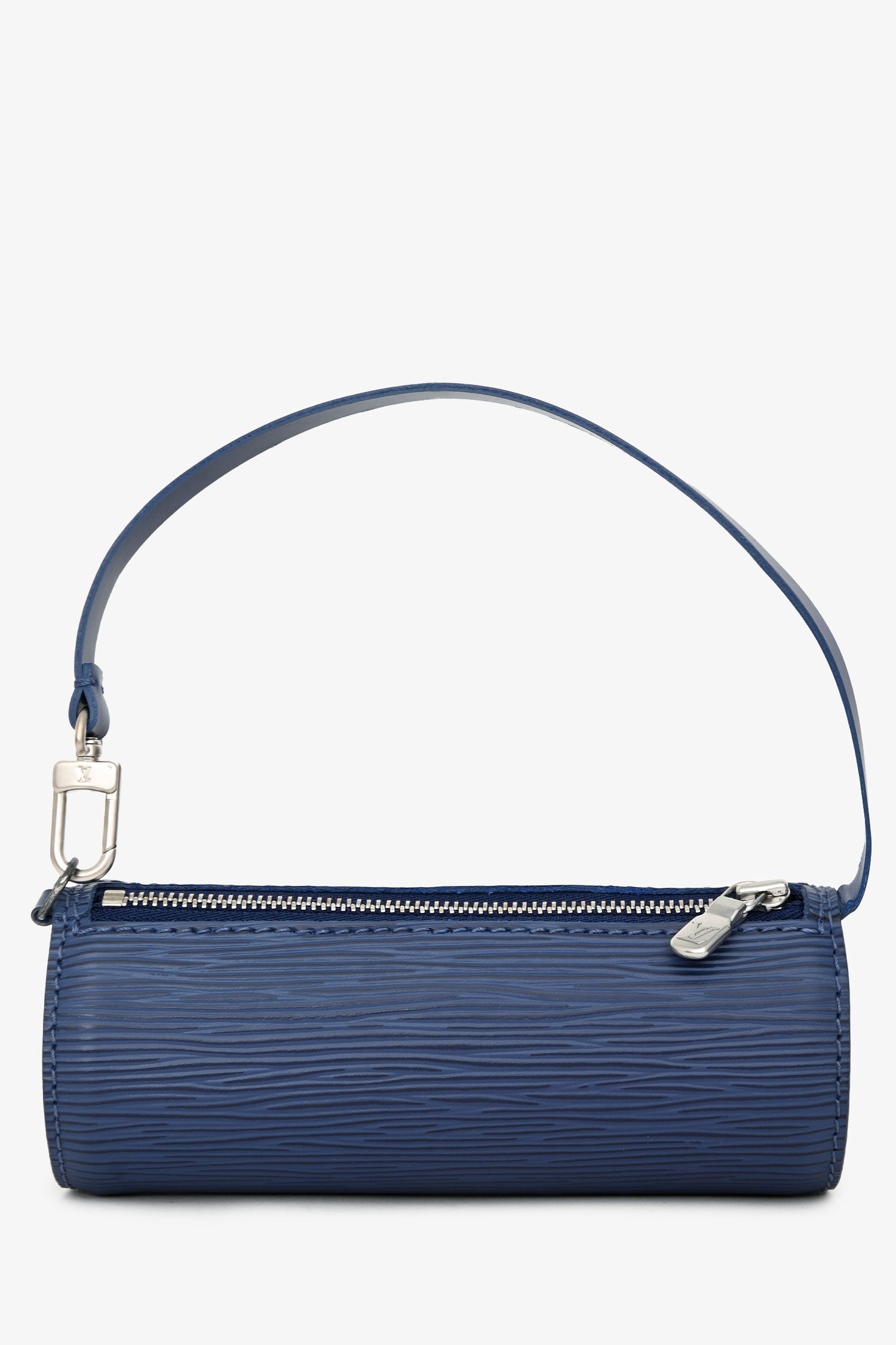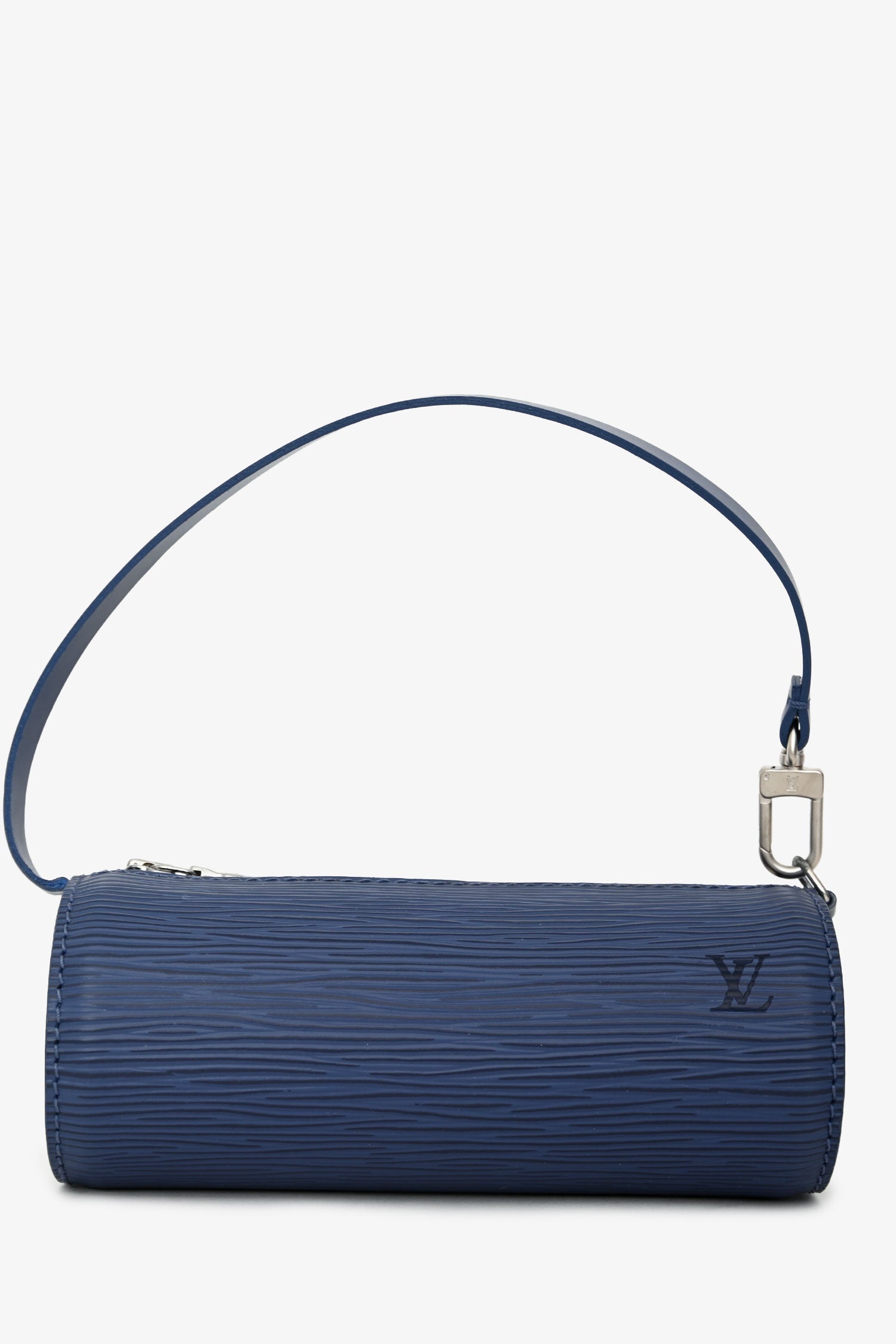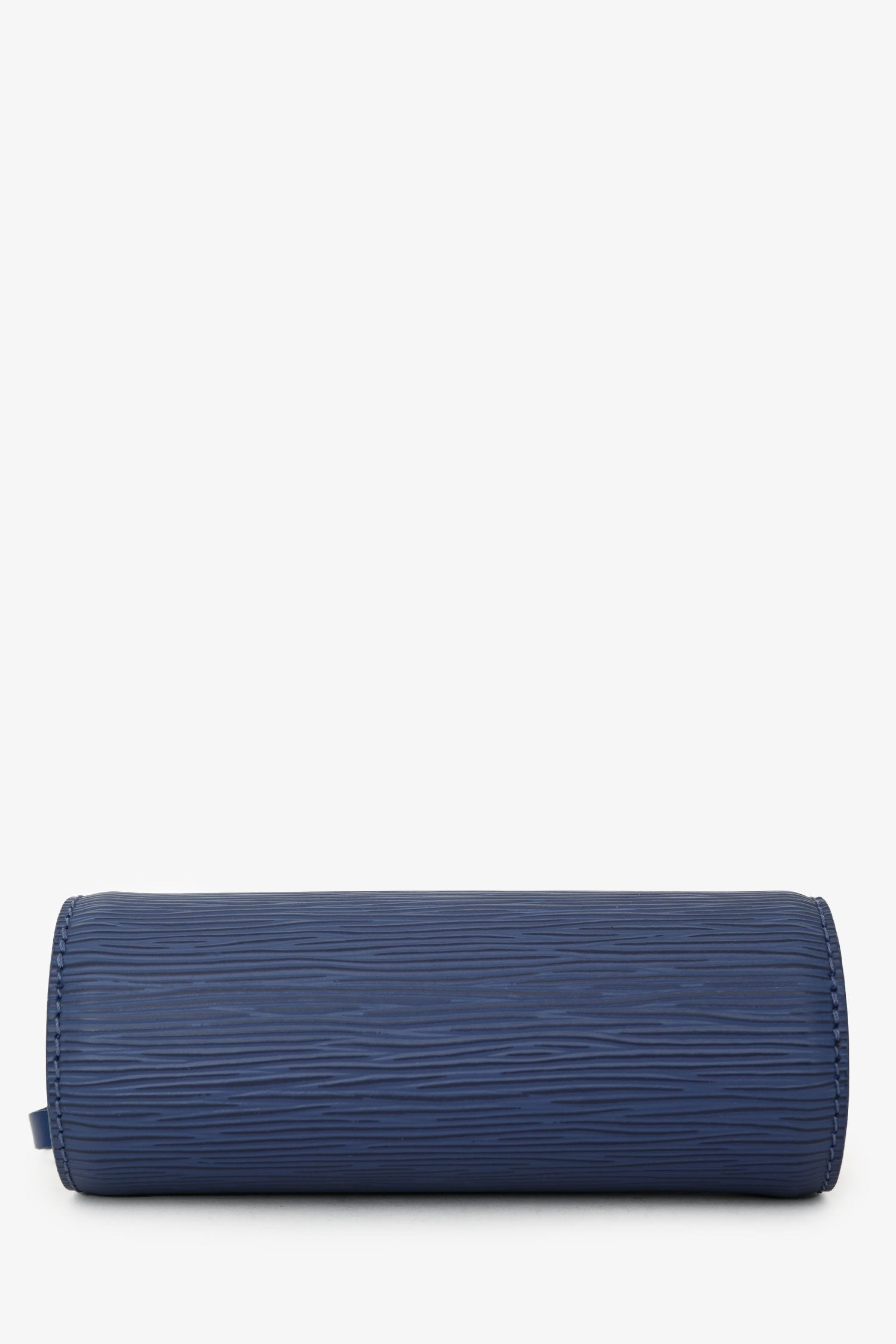 Louis Vuitton Blue Epi Leather Soufflot Pouch. Top zip closure. Suede-lined interior. Open interior. Silver-tone hardware. Tonal stitching.