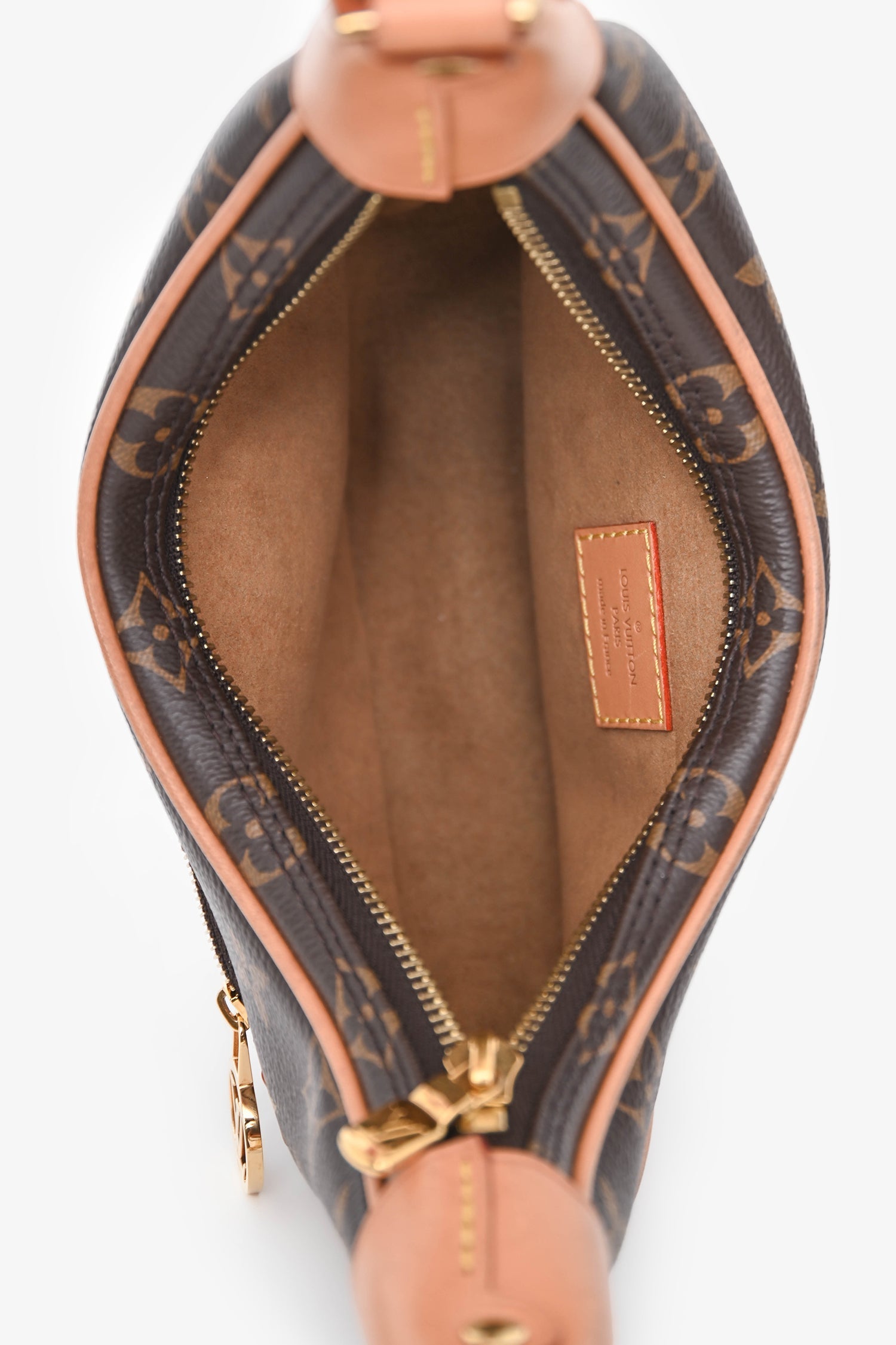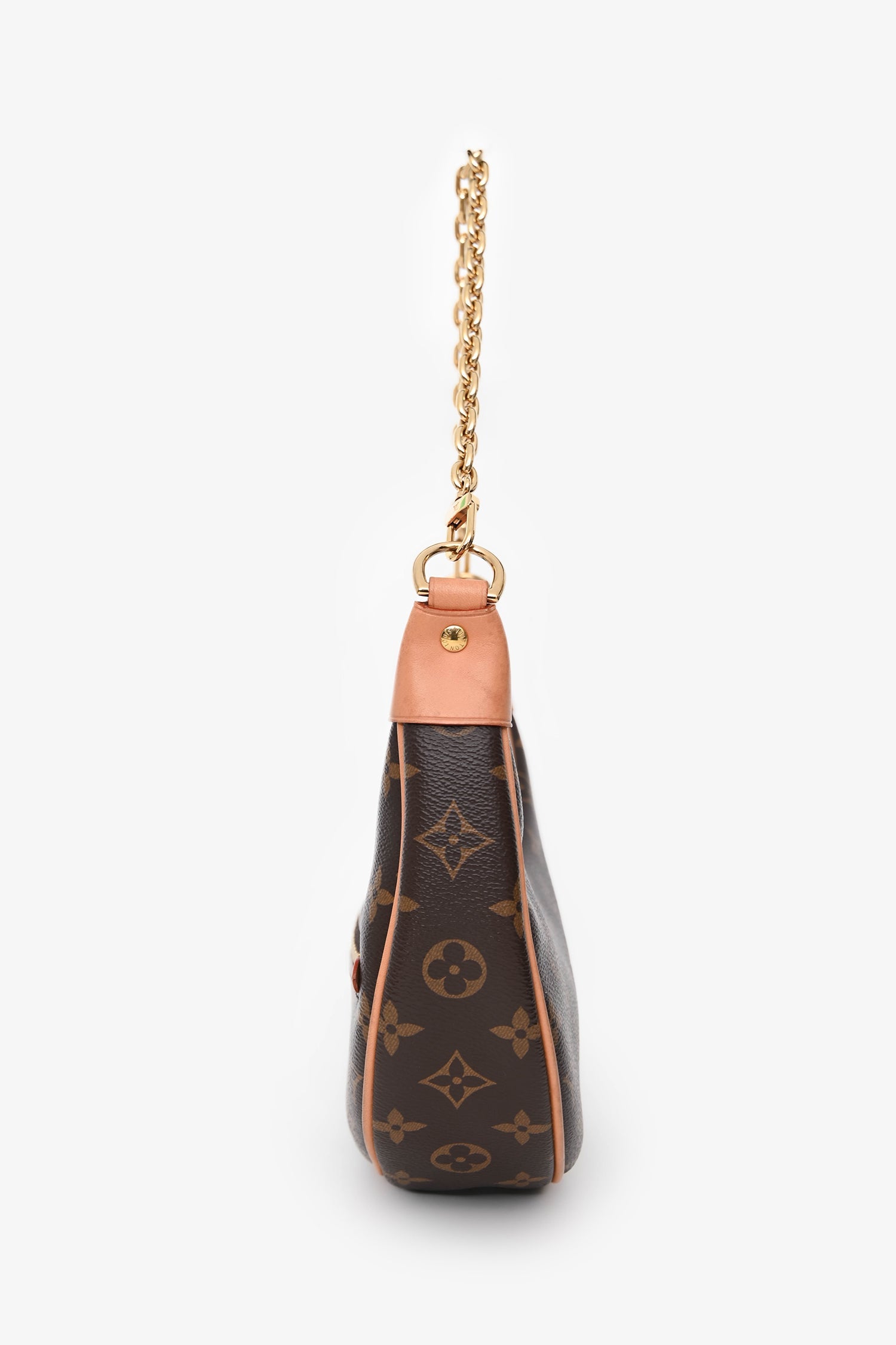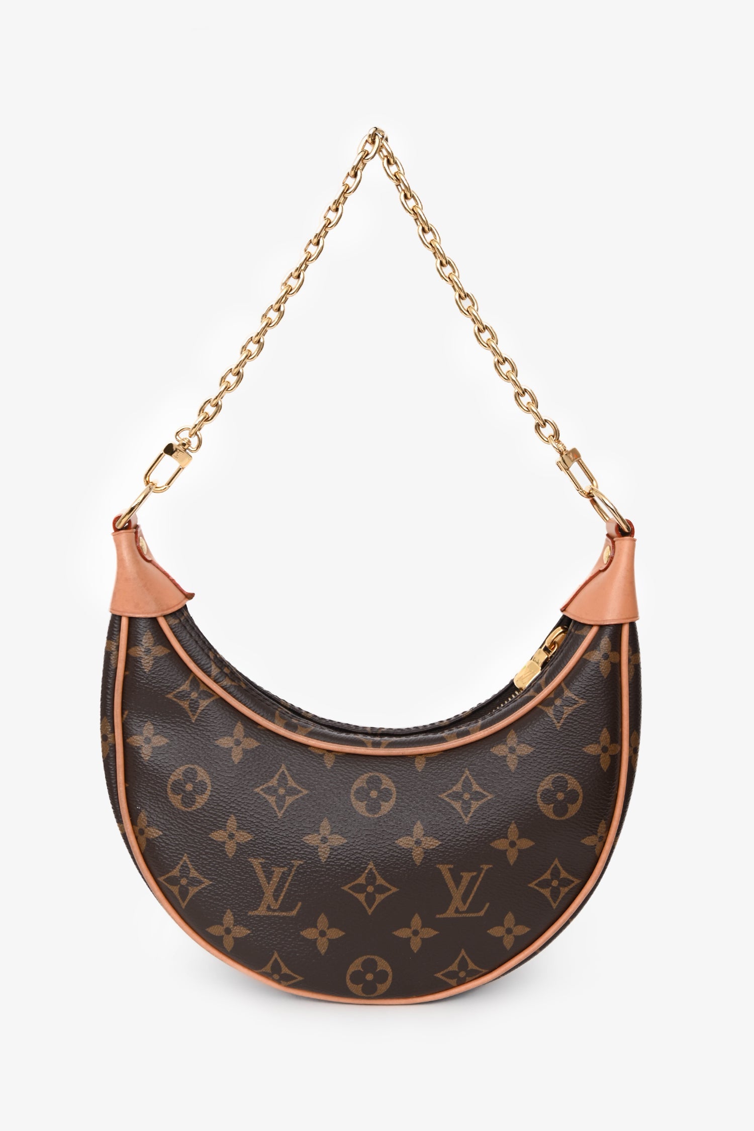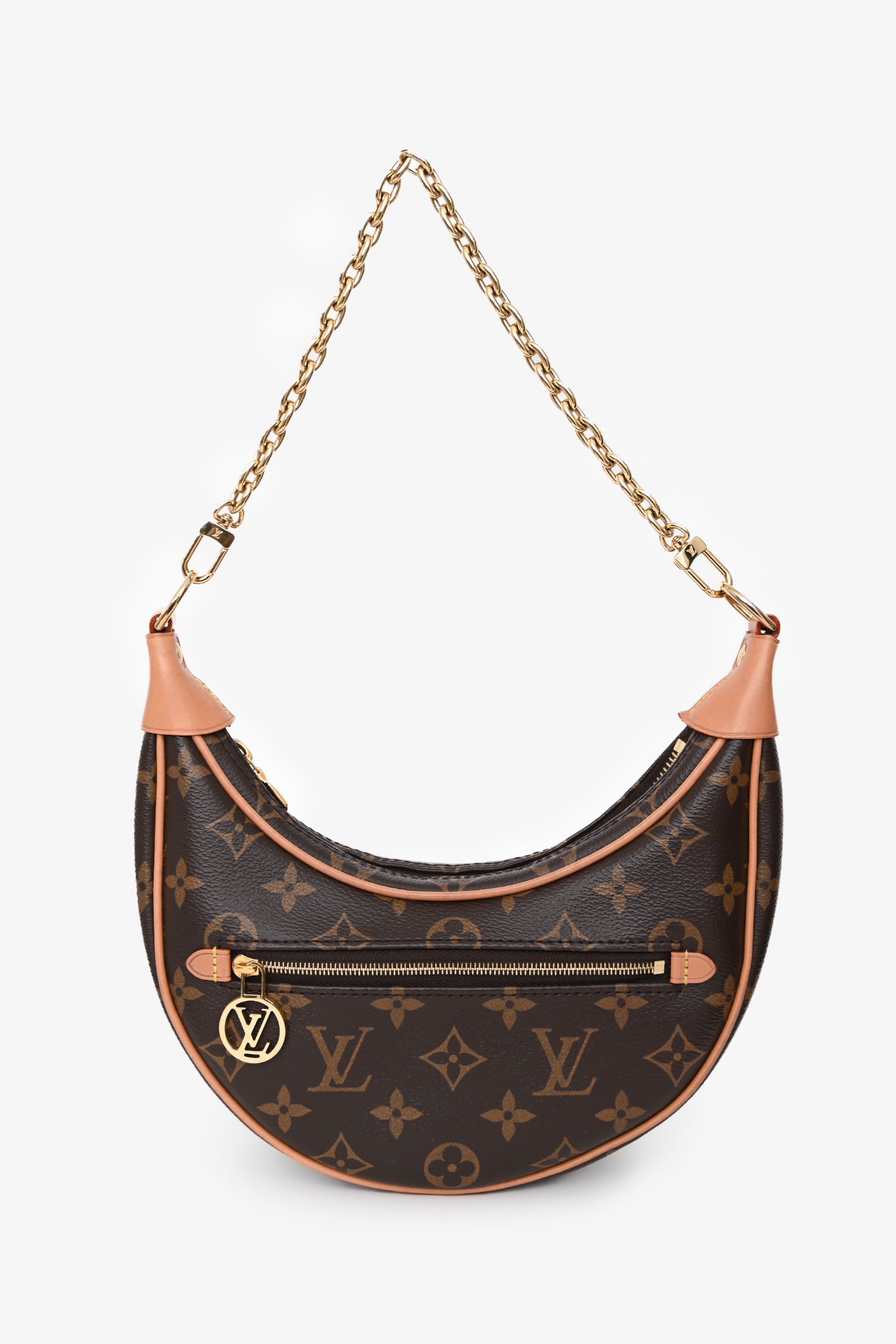 Louis Vuitton Monogram Loop Chain Shoulder Bag with Strap. Top zip closure. Removable chainlink shoulder strap and removable leather crossbody strap with adjustable snap-button closure. Front exterior zip pocket. Suede-lined interior. Gold-tone hardware. Tonal stitching.