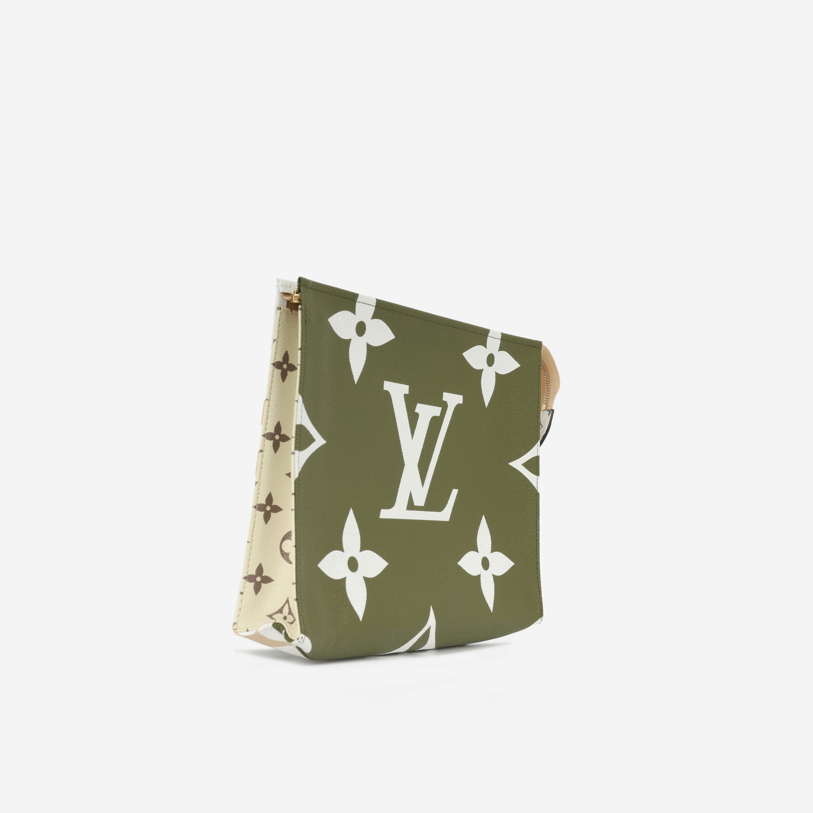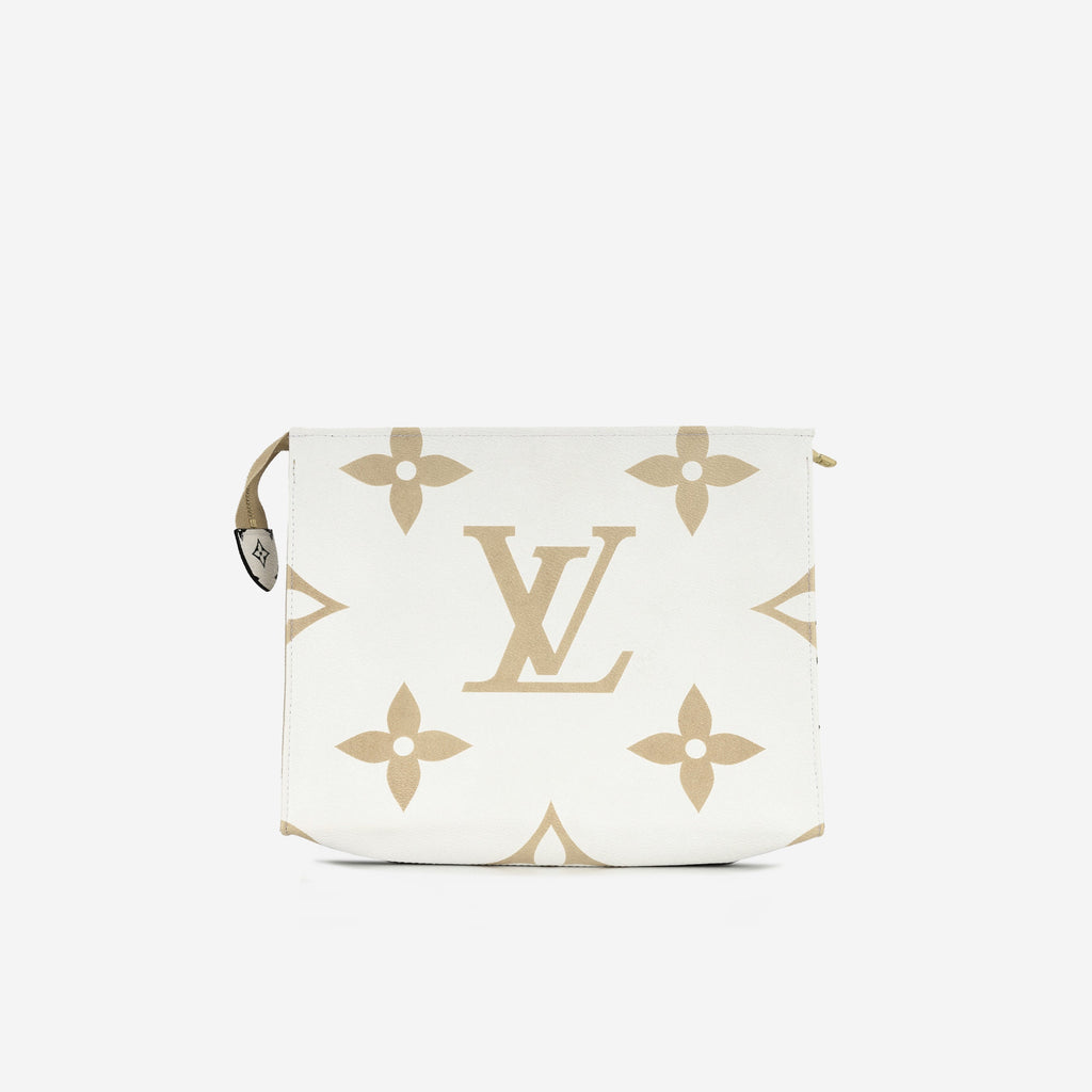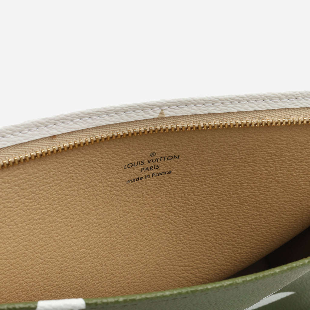 The Green/White Giant Monogram Canvas Toiletry Pouch On Chain reimagines the classic toiletry pouch with a bold twist. Crafted from the striking Green/White Giant Monogram canvas, this stylish piece pays homage to the original Monogram Toiletry Pouch, first introduced in 1901.