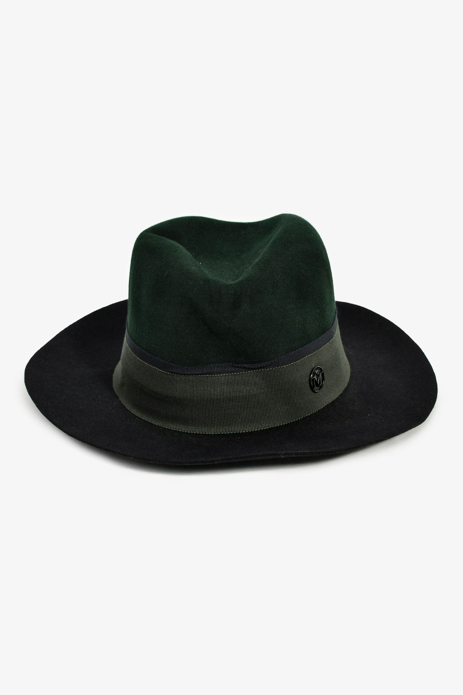 Maison Michel Blue/Green Felt Wide Brim Hat. Slip-on. Tonal stitching.