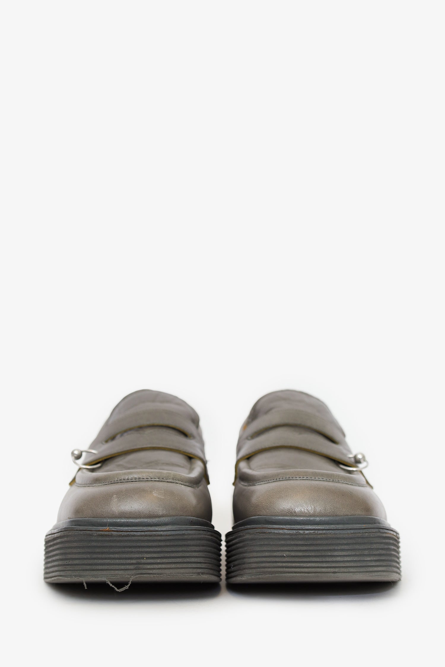 Marni Grey Leather Piercing Square-toe Loafers Size 41 Mens