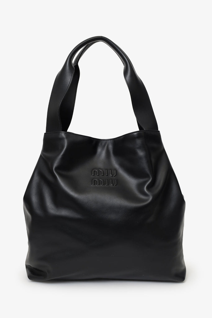Miu Miu Black Leather Embossed-Logo Tote Bag