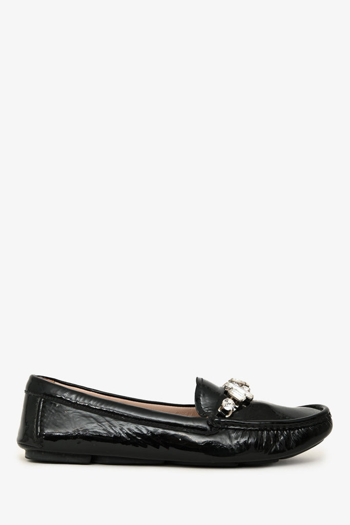 Miu Miu Black Patent Leather Embellished Loafers Size 37