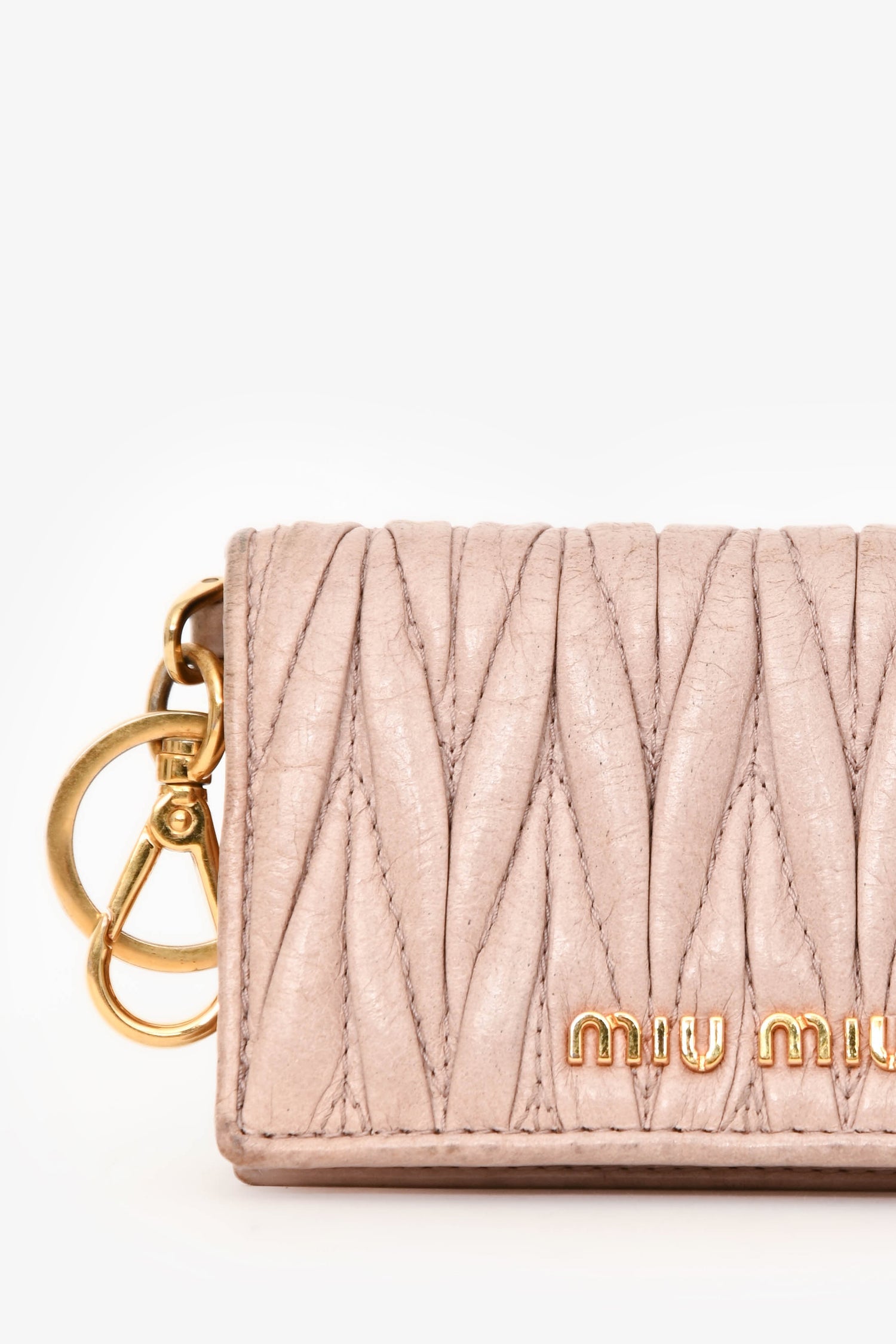 Miu Miu Cream Matelassé Leather Cardholder Keychain