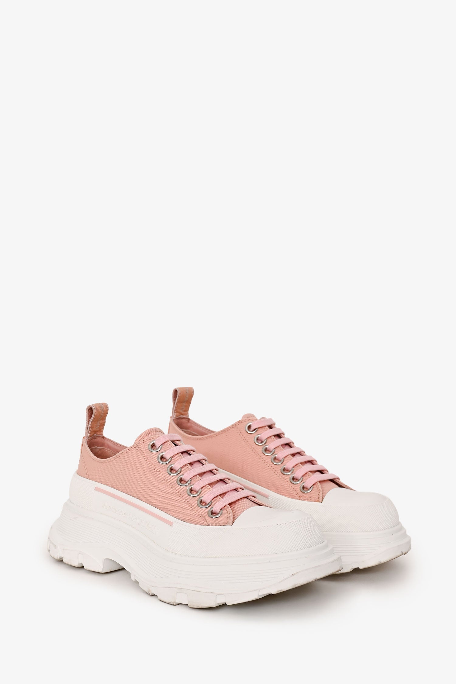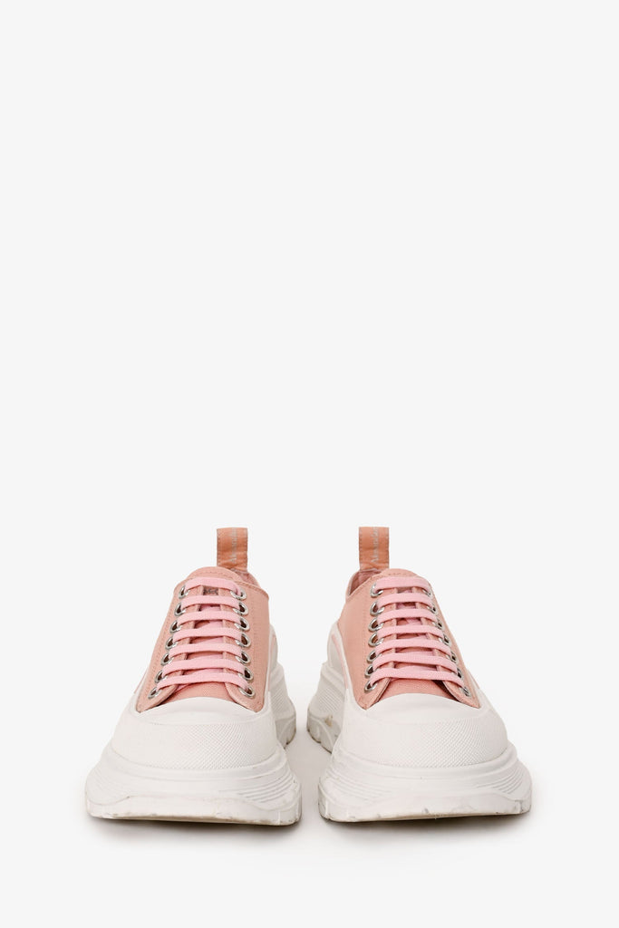 Alexander McQueen Pink Canvas Oversize Sneakers. Slip-on. Round toe. Front lace-up closure. Tonal stitching.
