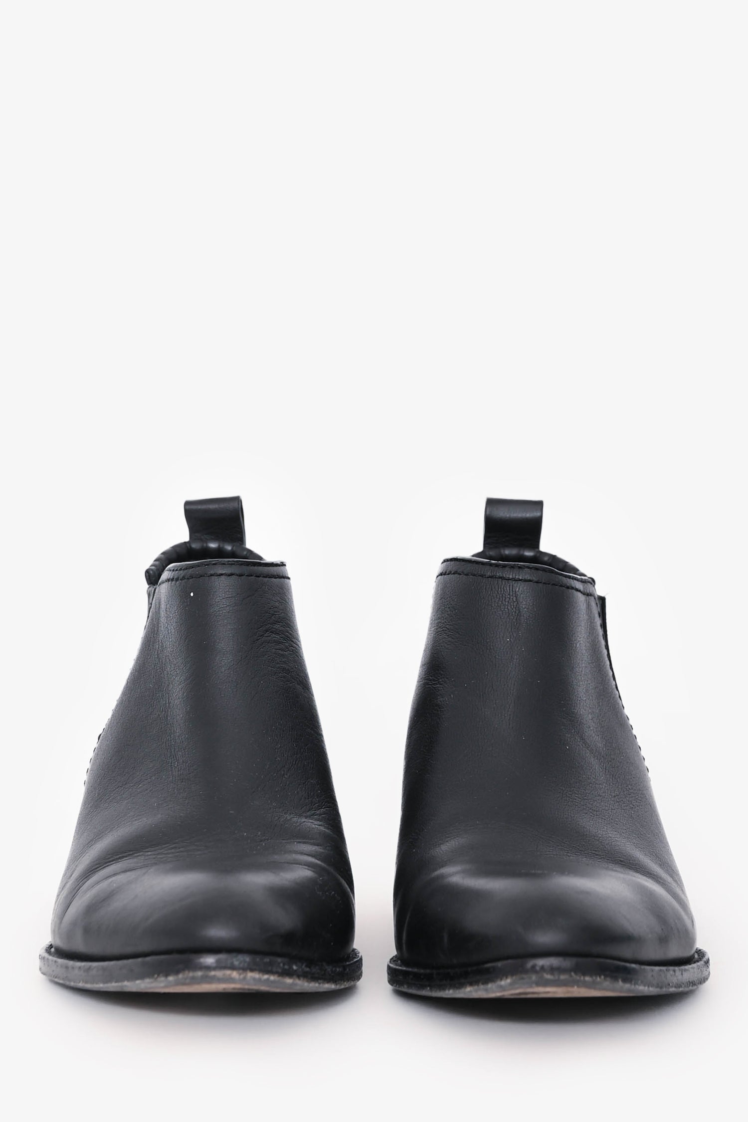 Alexander Wang Black Leather Kori Ankle Boots. Pull-on. Elasticized side panels. Tonal stitching.
