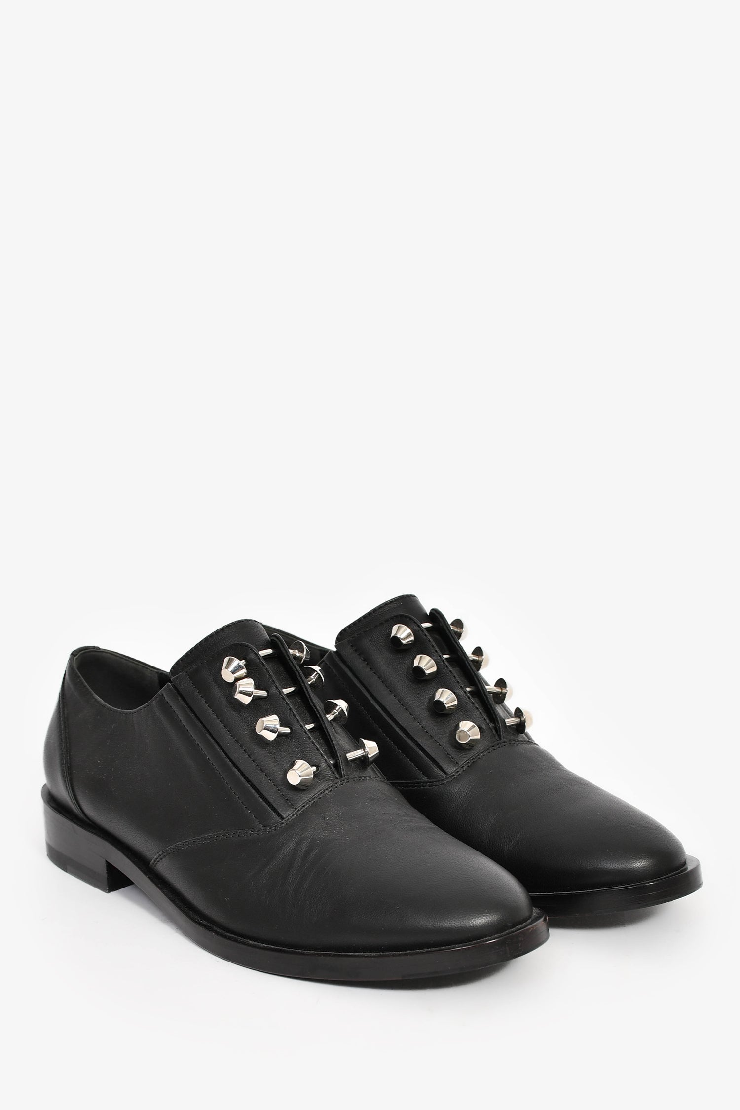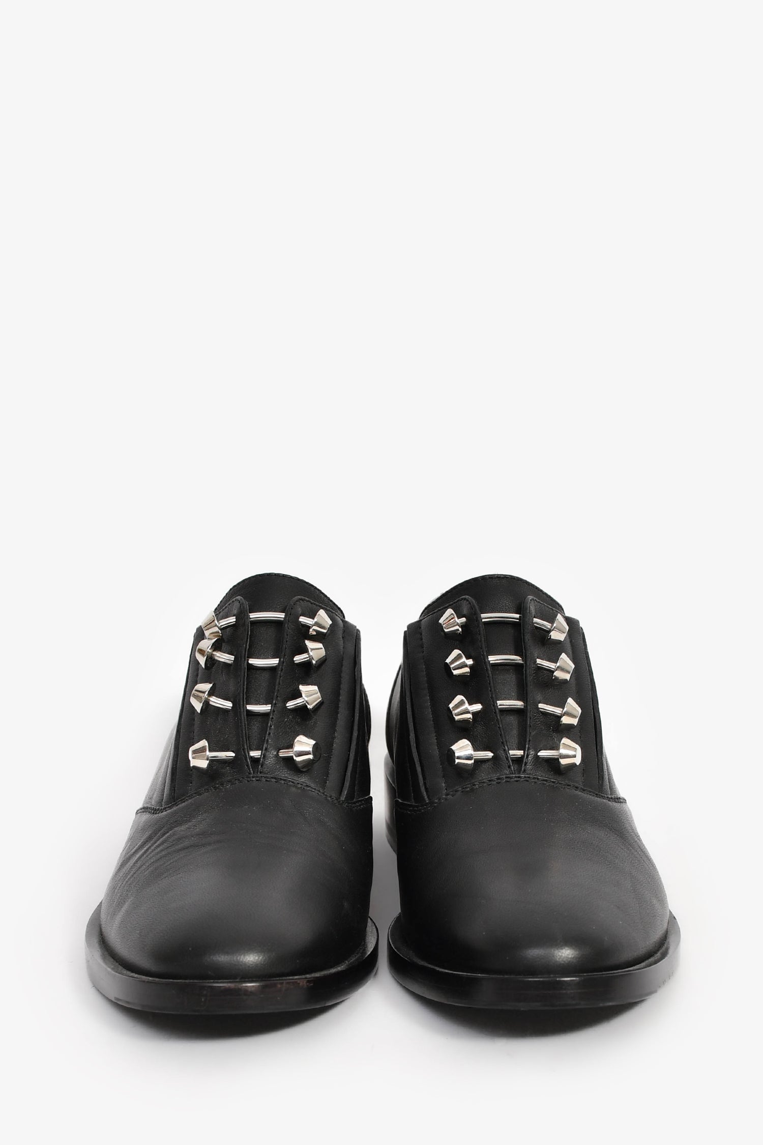 Balenciaga Black Leather Silver Detail Oxford Shoes Size 37.5