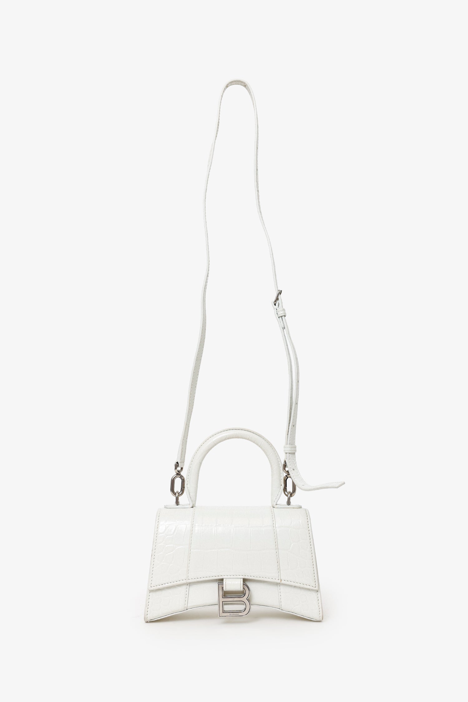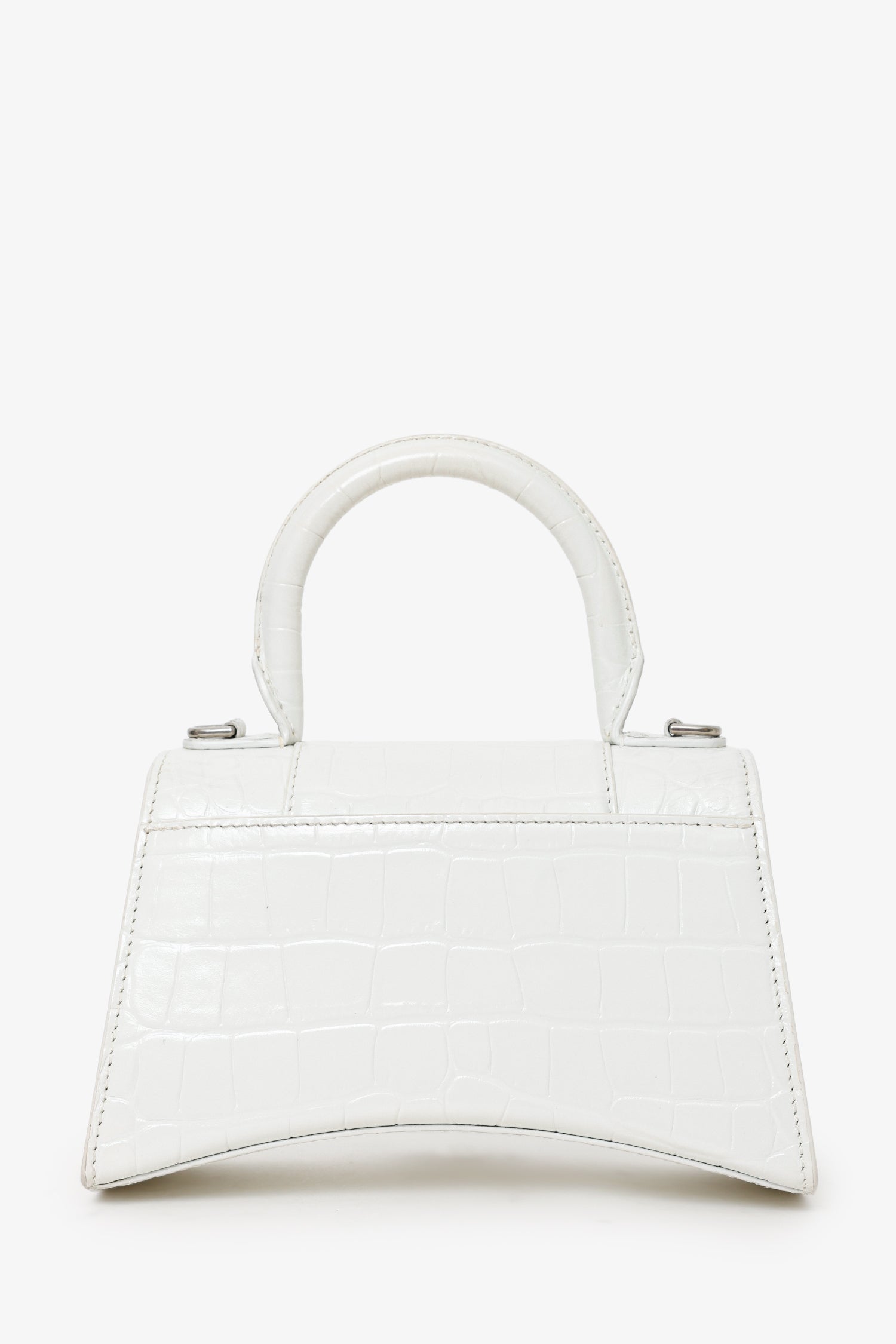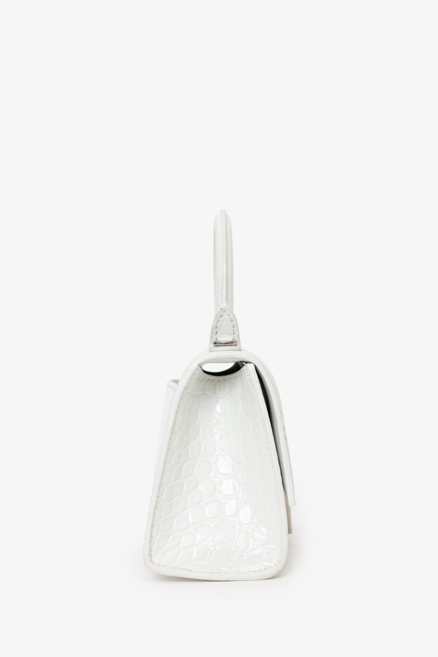 Balenciaga White Croc Embossed XS Hourglass Top Handle Bag With Strap