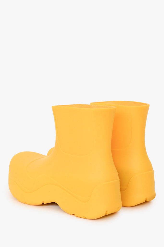 Bottega Veneta Yellow Rubber Rain Boots. Slip-on. Round toe. Leather insole.