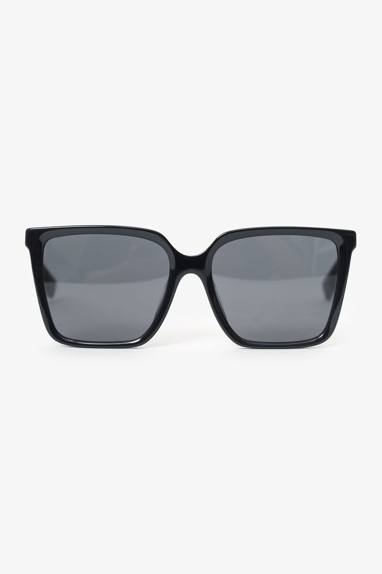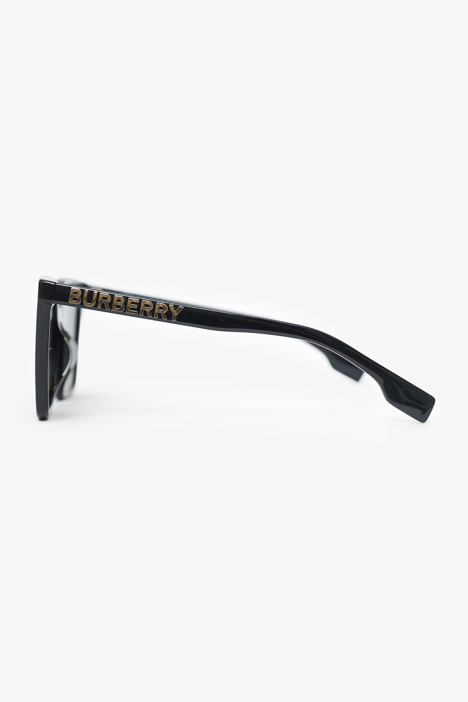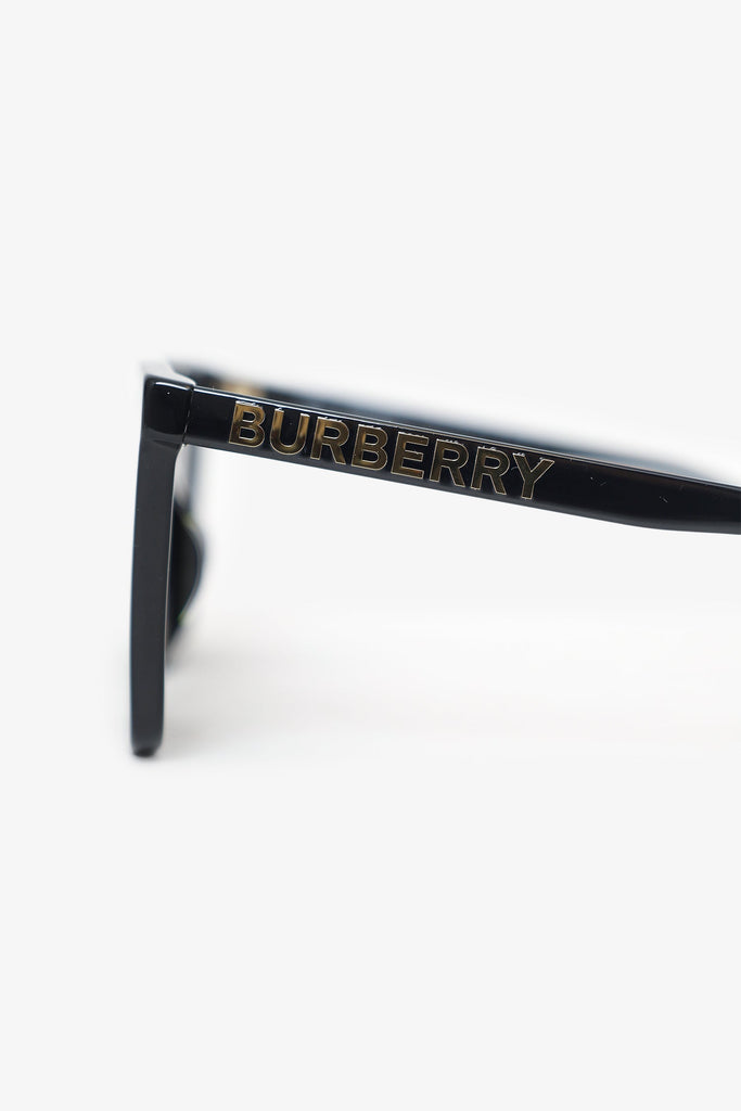 Burberry Black Frame Logo Square Sunglasses. Built-in nose pads. Gold-tone hardware.