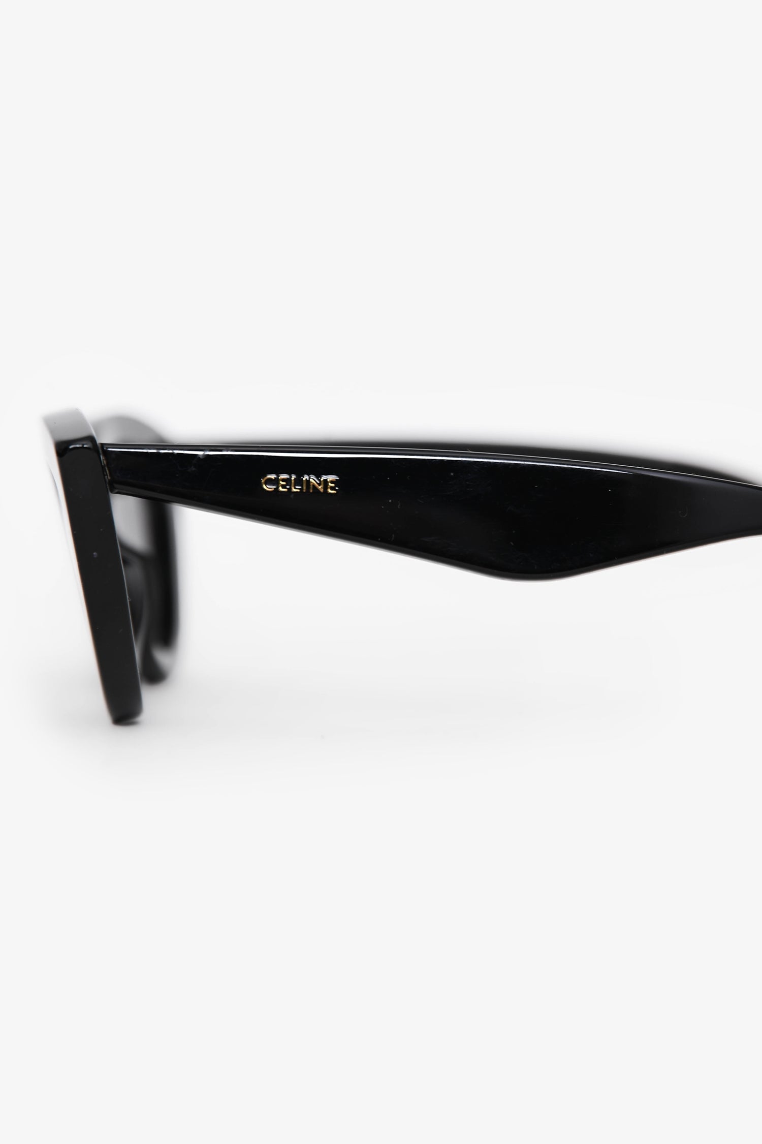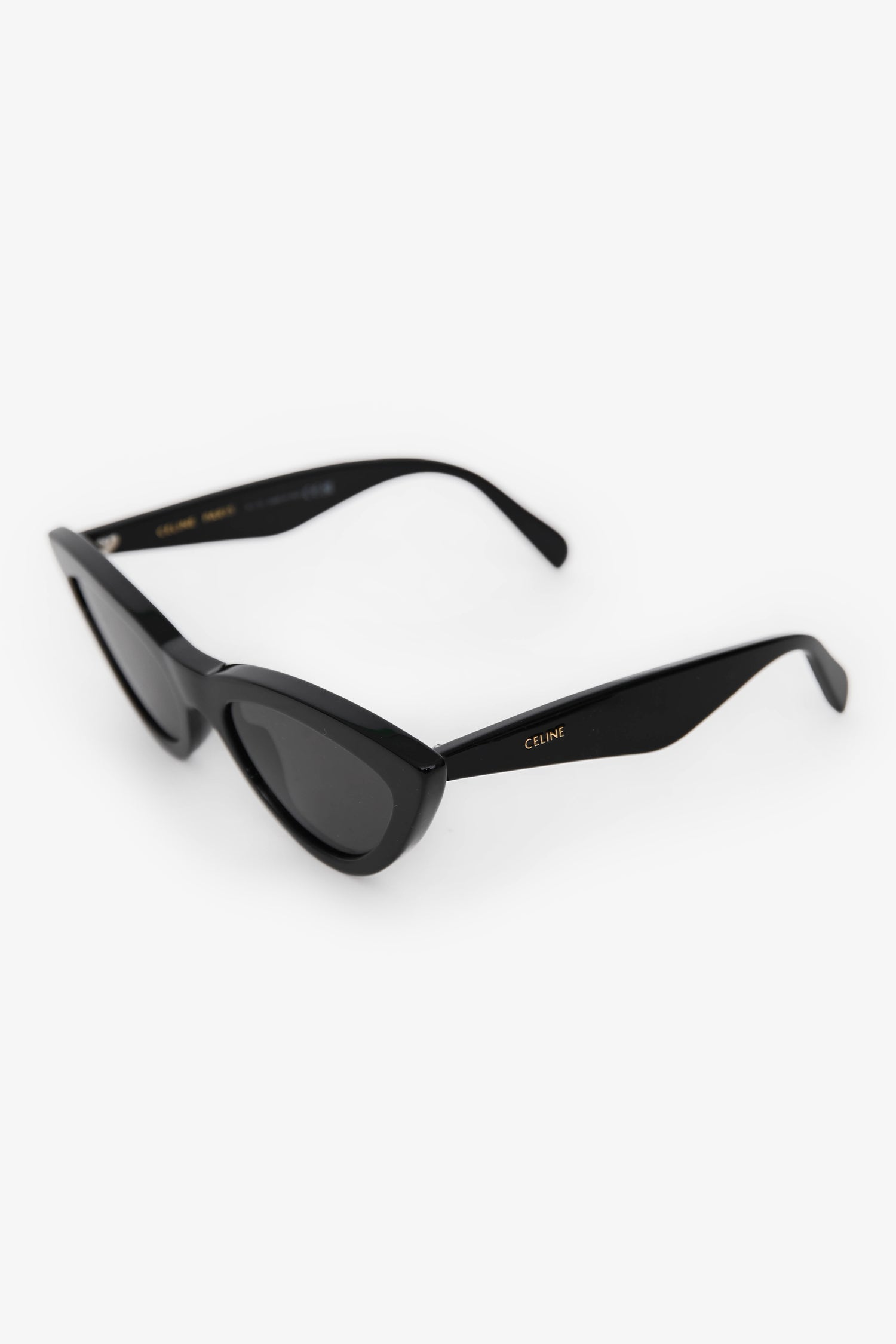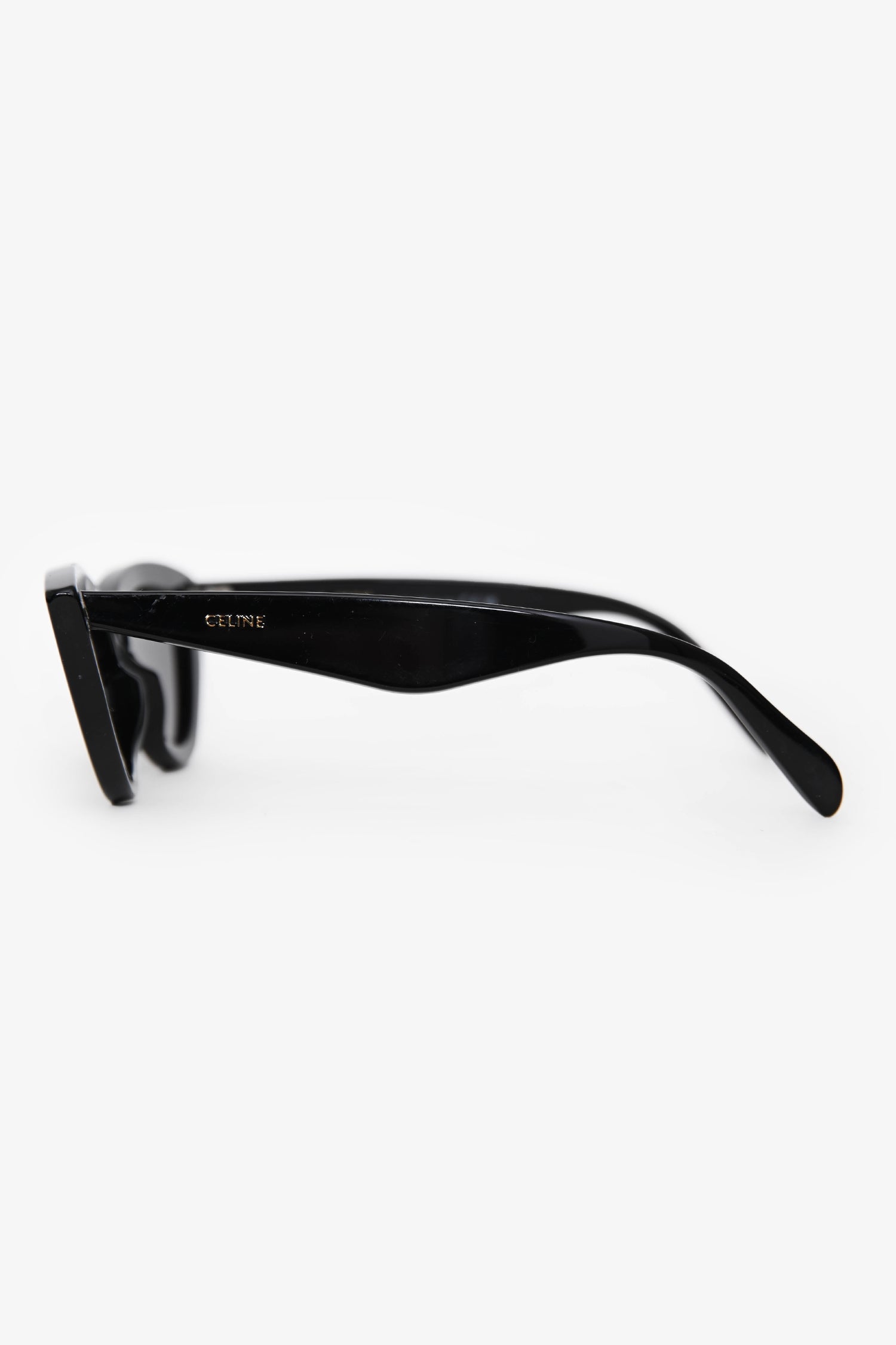Celine Black Cat Eye Sunglasses. Built-in nose pads. Silver-tone hardware.