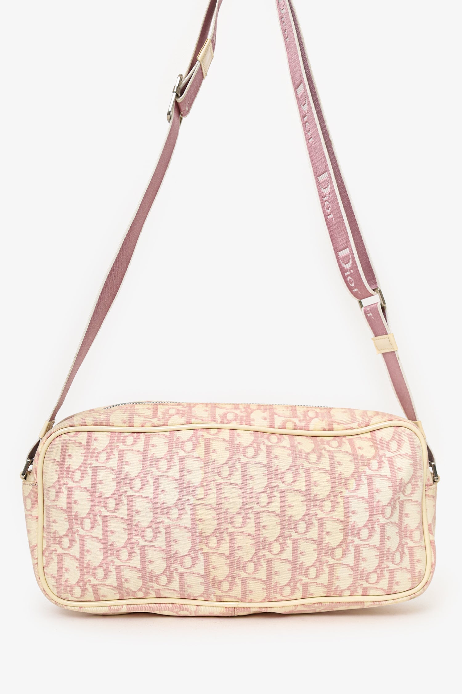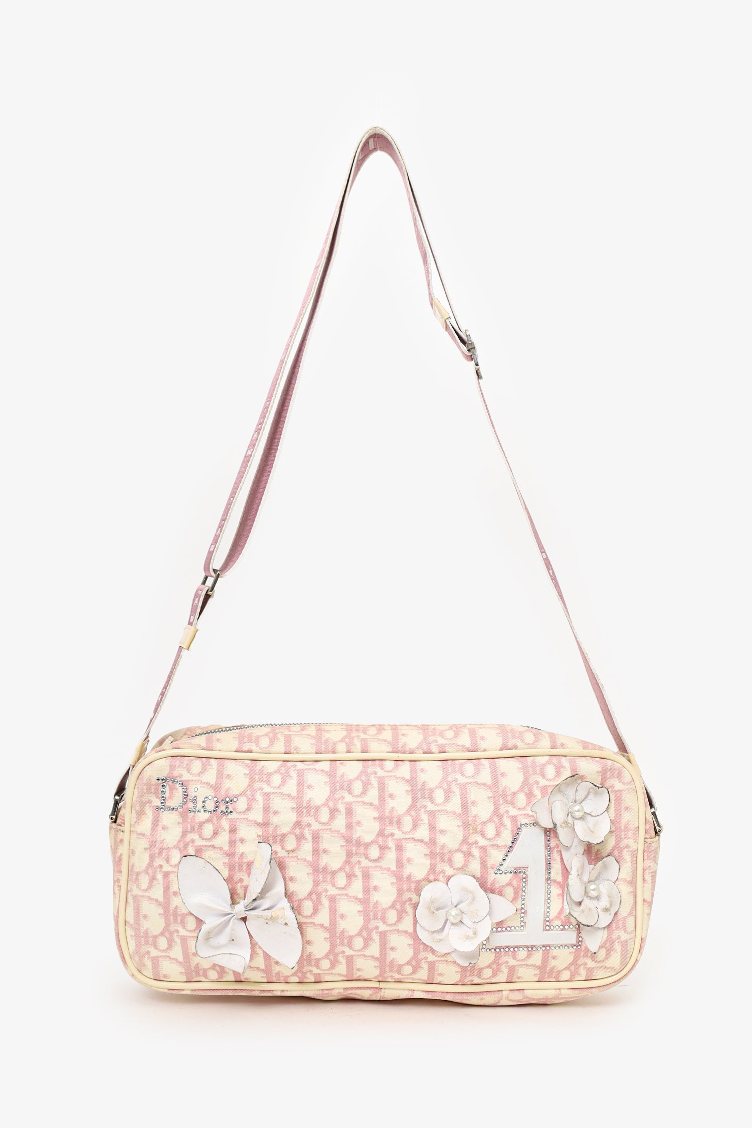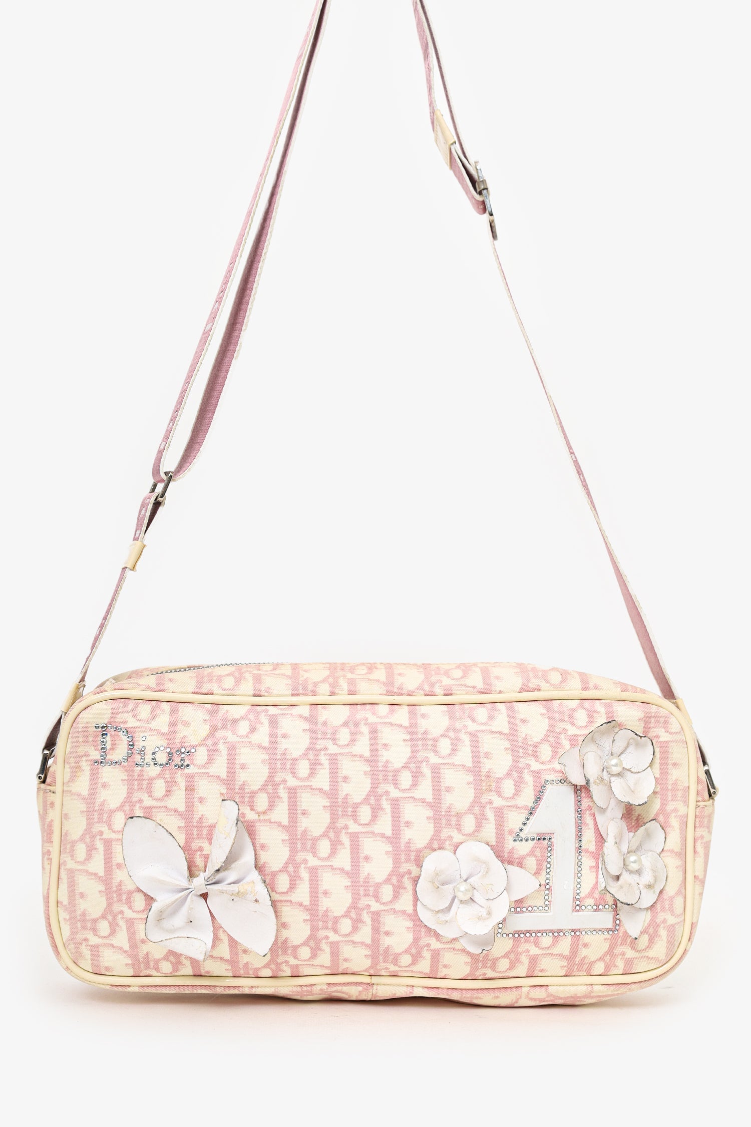 Christian Dior 2004 pink pochette with white leather flowers