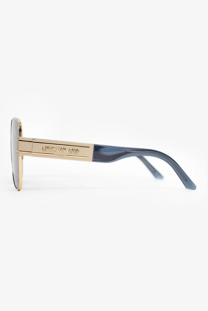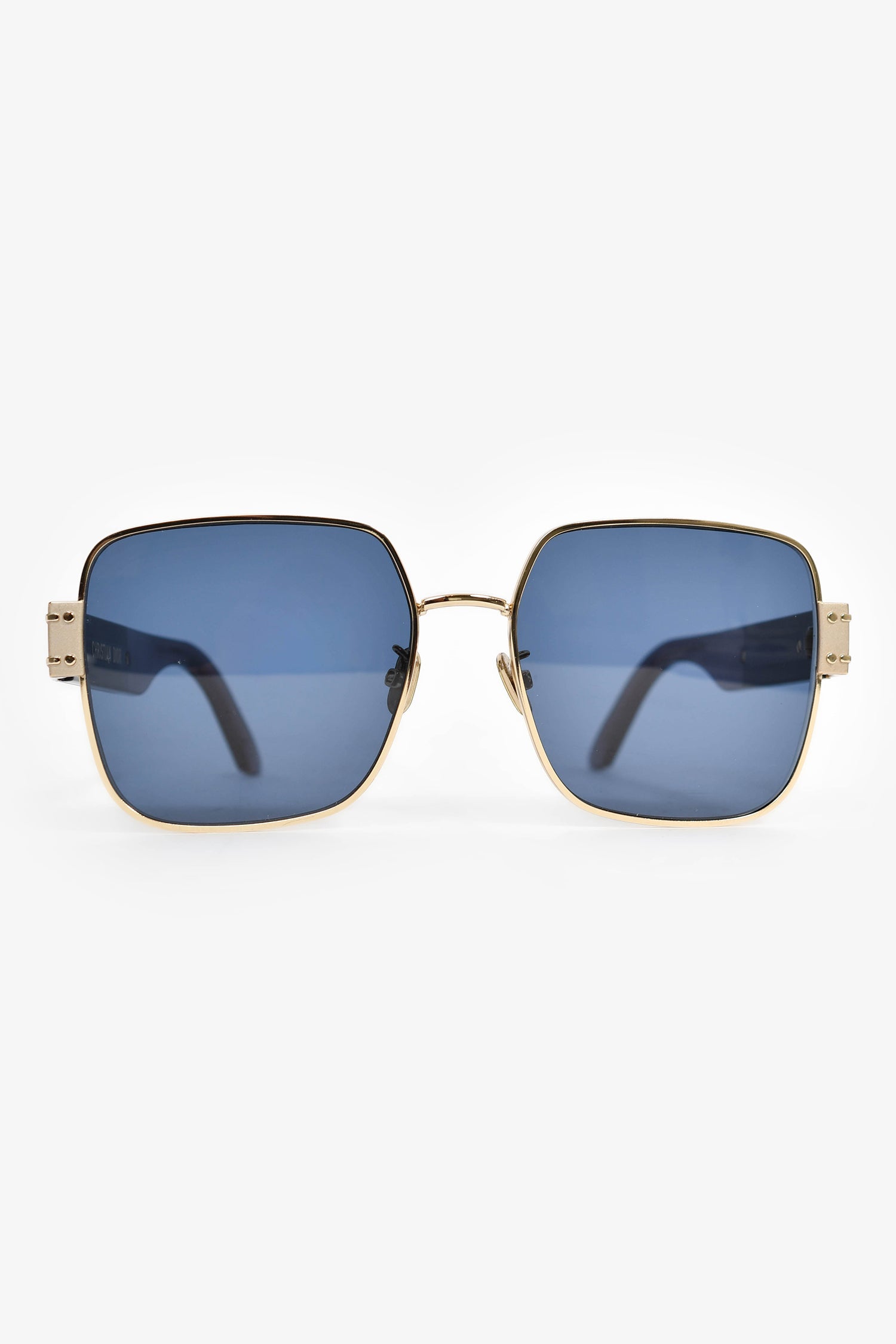 Christian Dior Black/Gold Rectangular Logo Sunglasses. Adjustable nose pads. Gold-tone hardware.