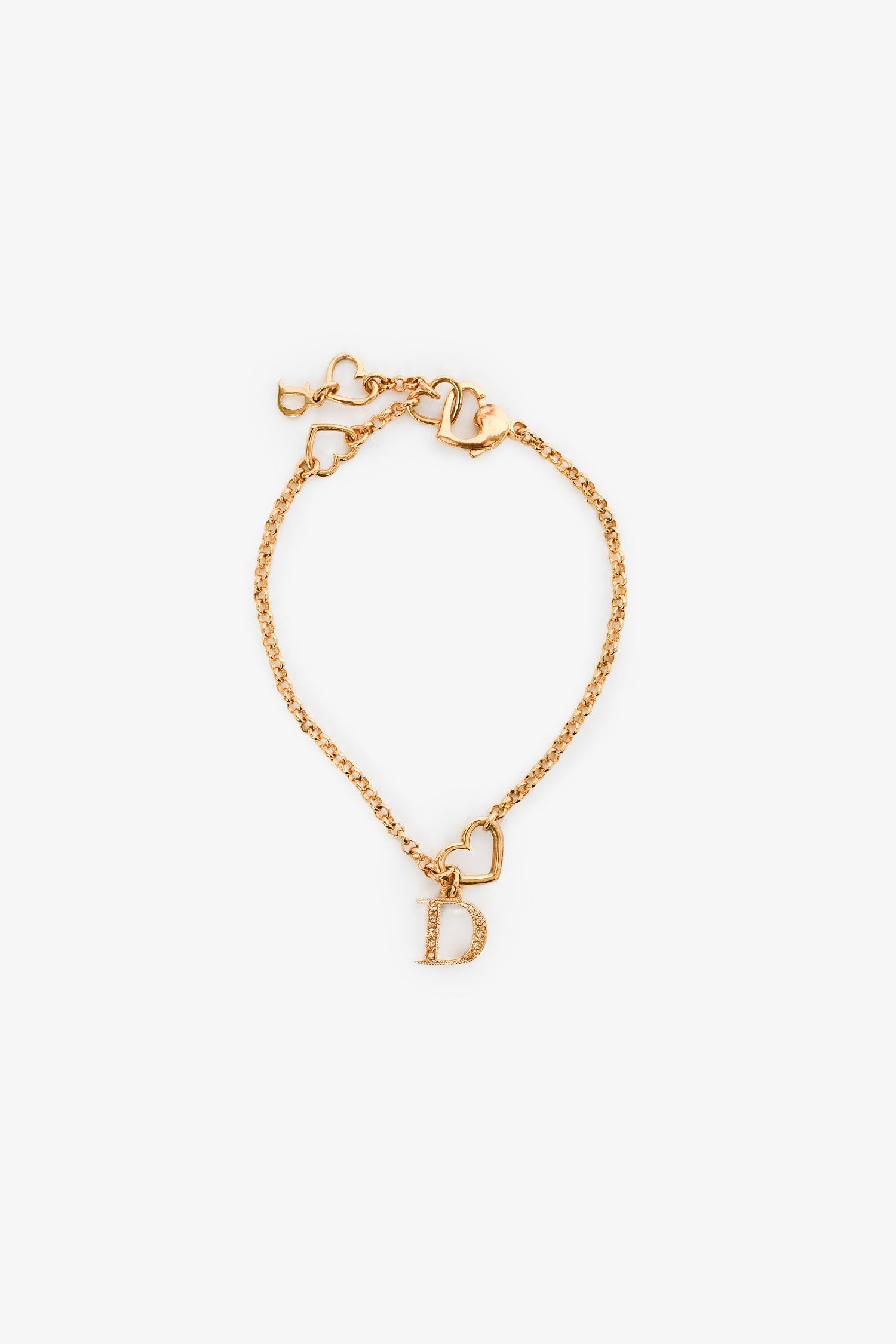 Christian Dior Gold 'Love Heart D' Bracelet. Heart clasp closure. Gold-tone hardware.