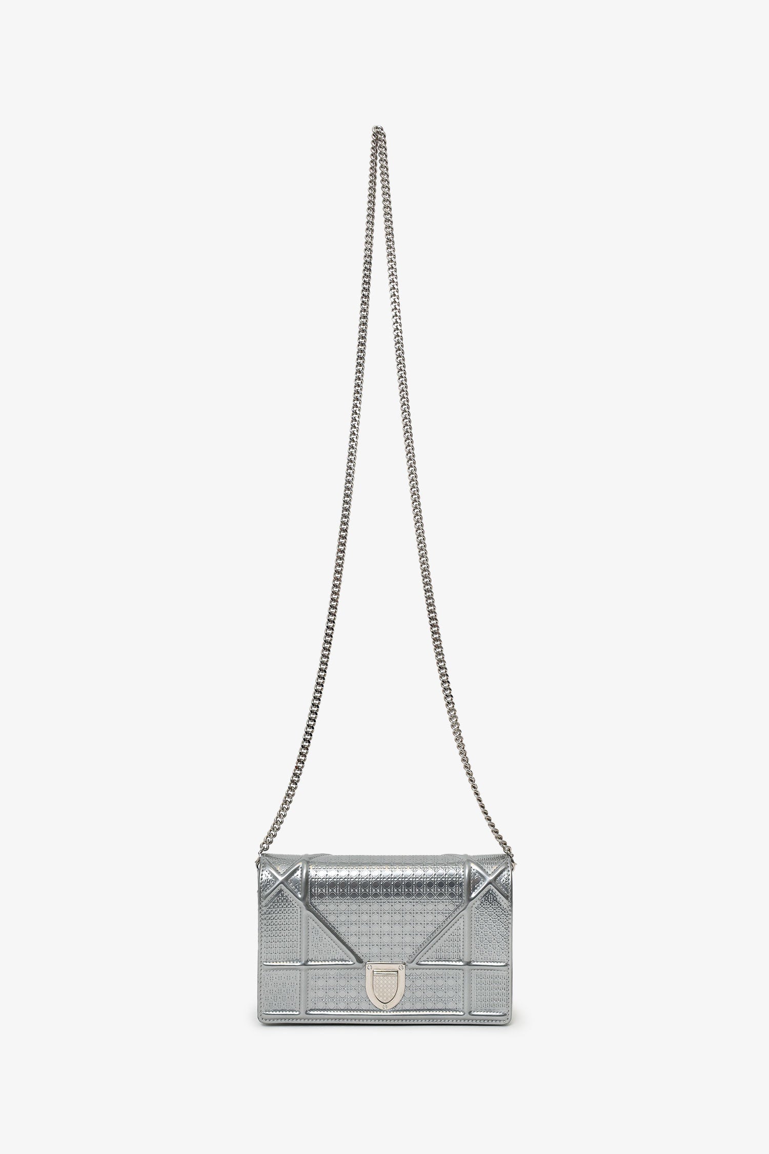 Christian Dior Metallic Patent Microcannage Diorama Wallet on Chain