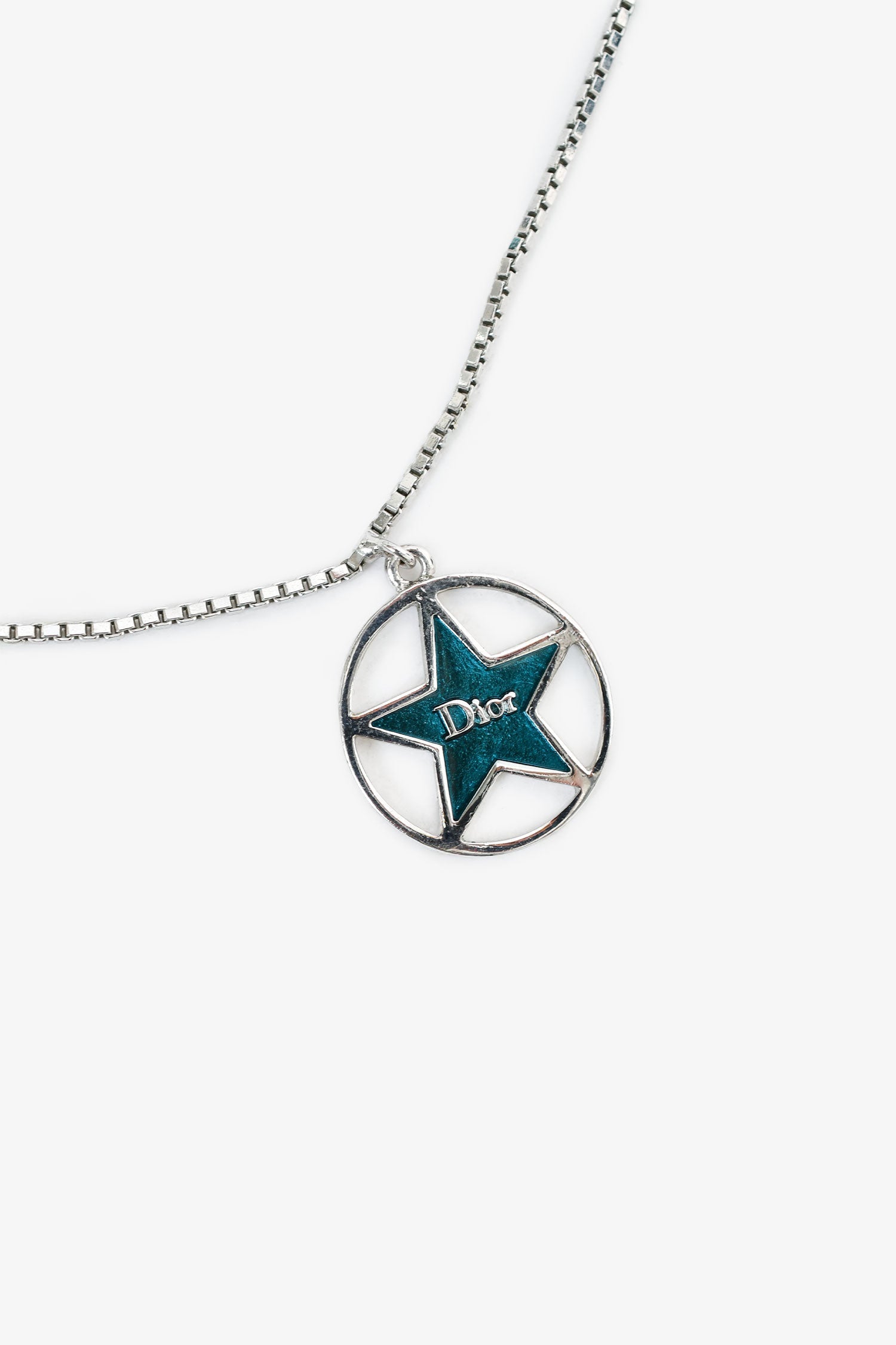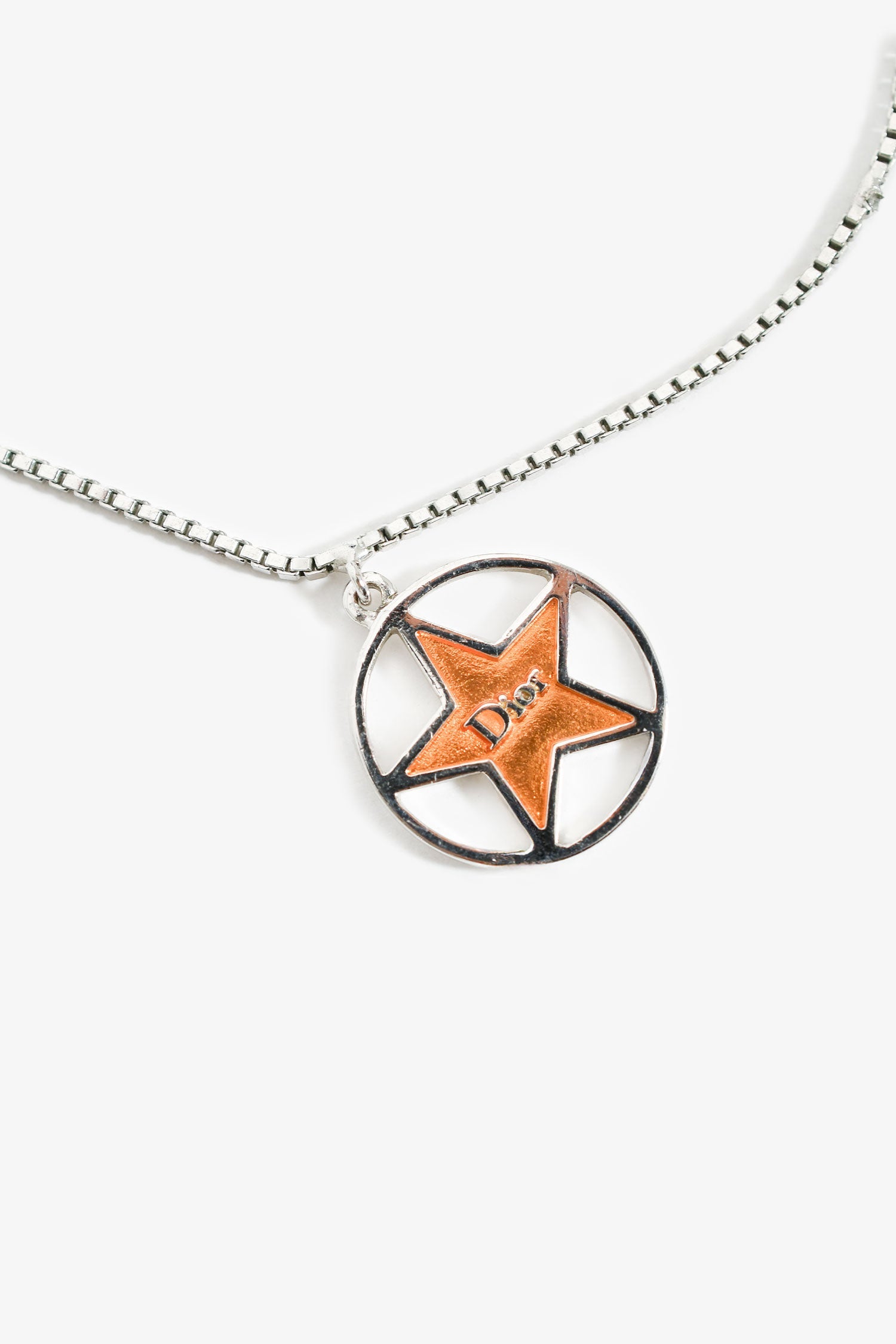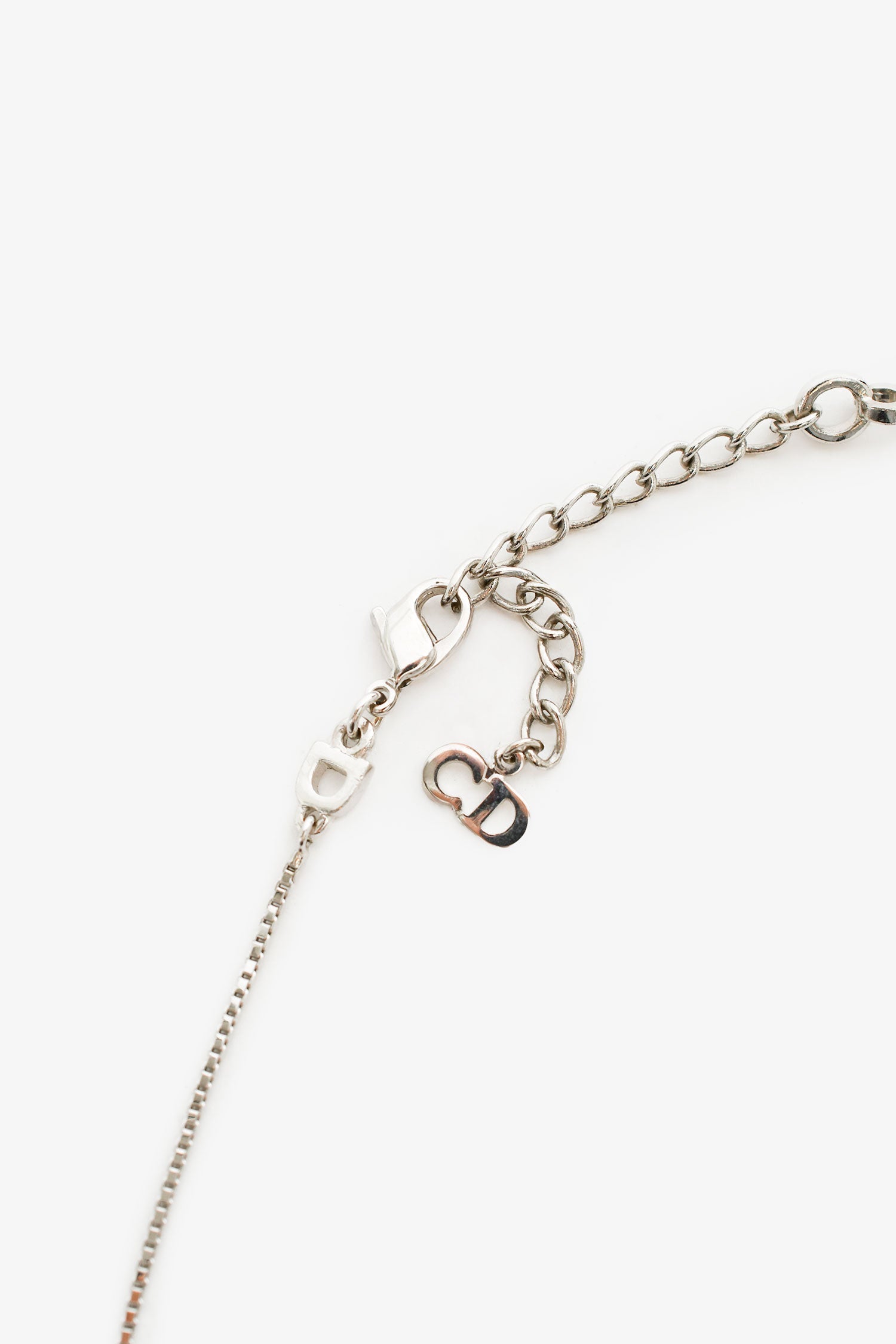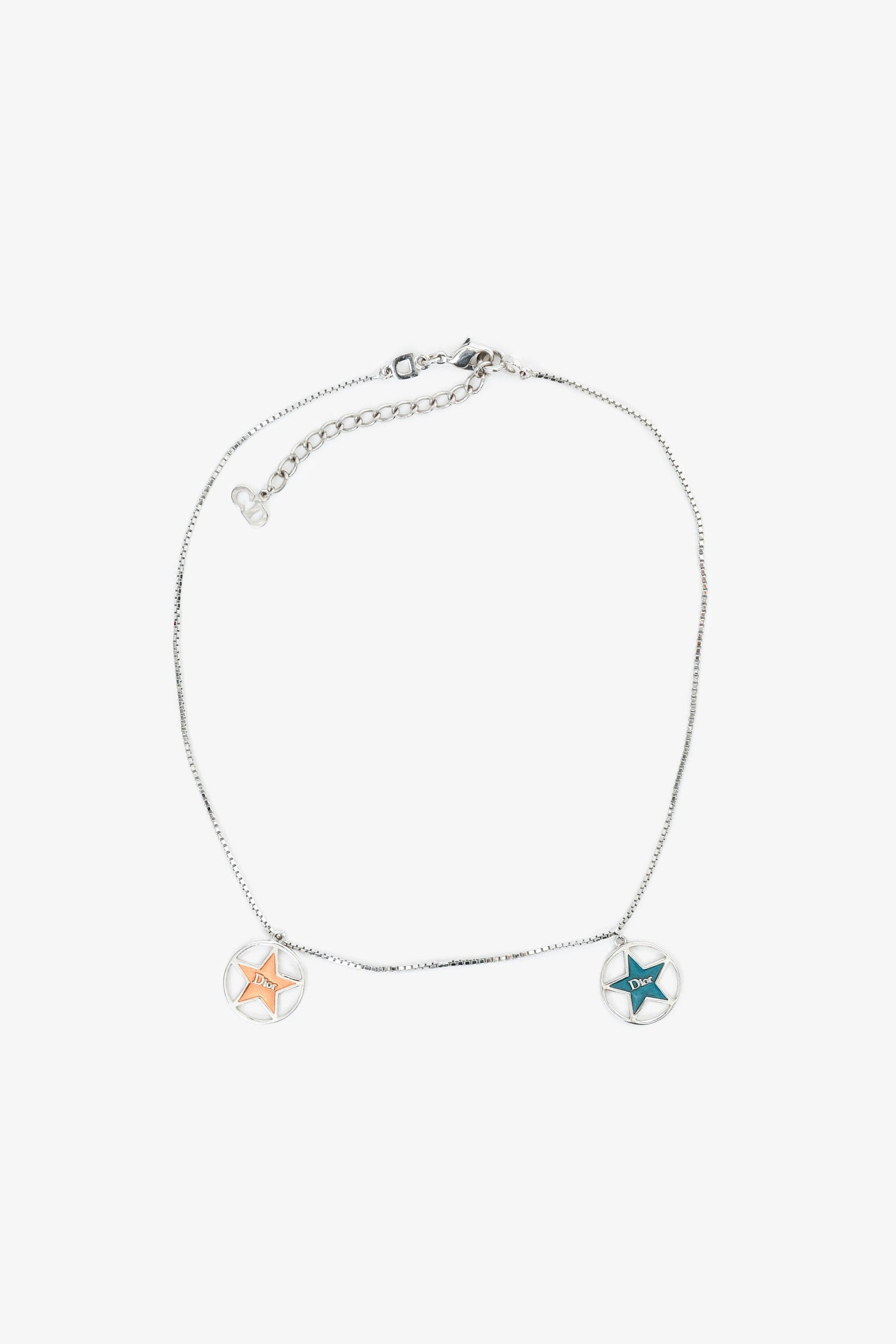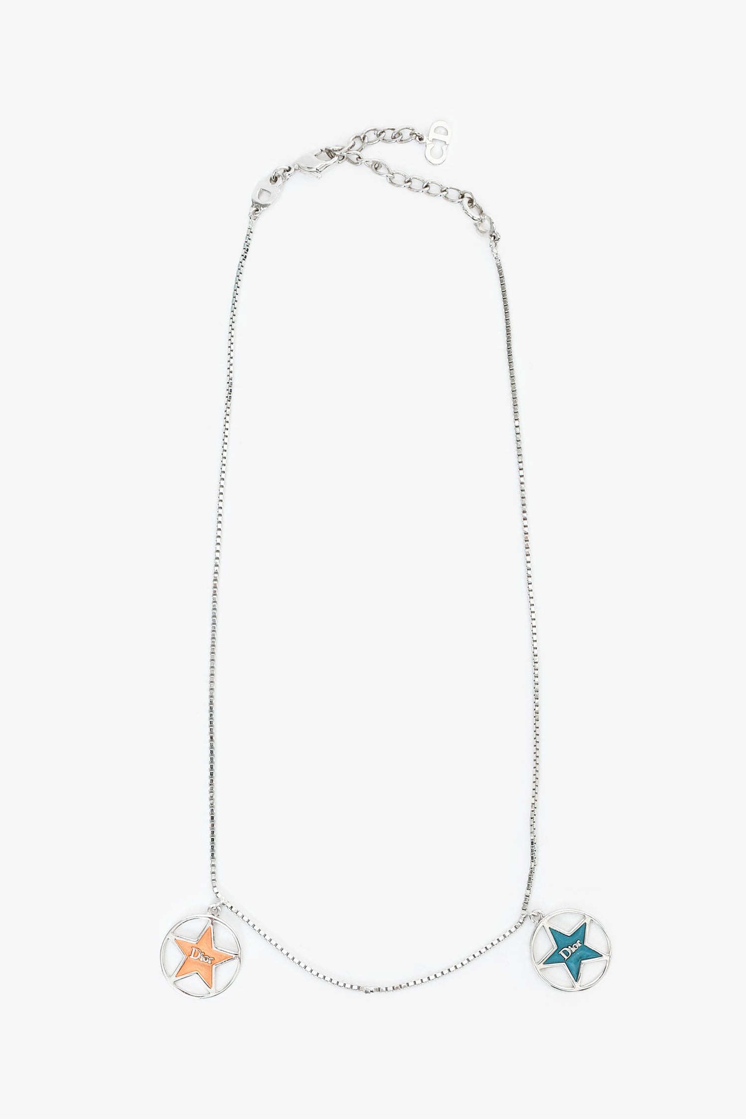 Christian Dior Silver Tone Double Star Necklace. Lobster clasp closure. Silver-tone hardware.