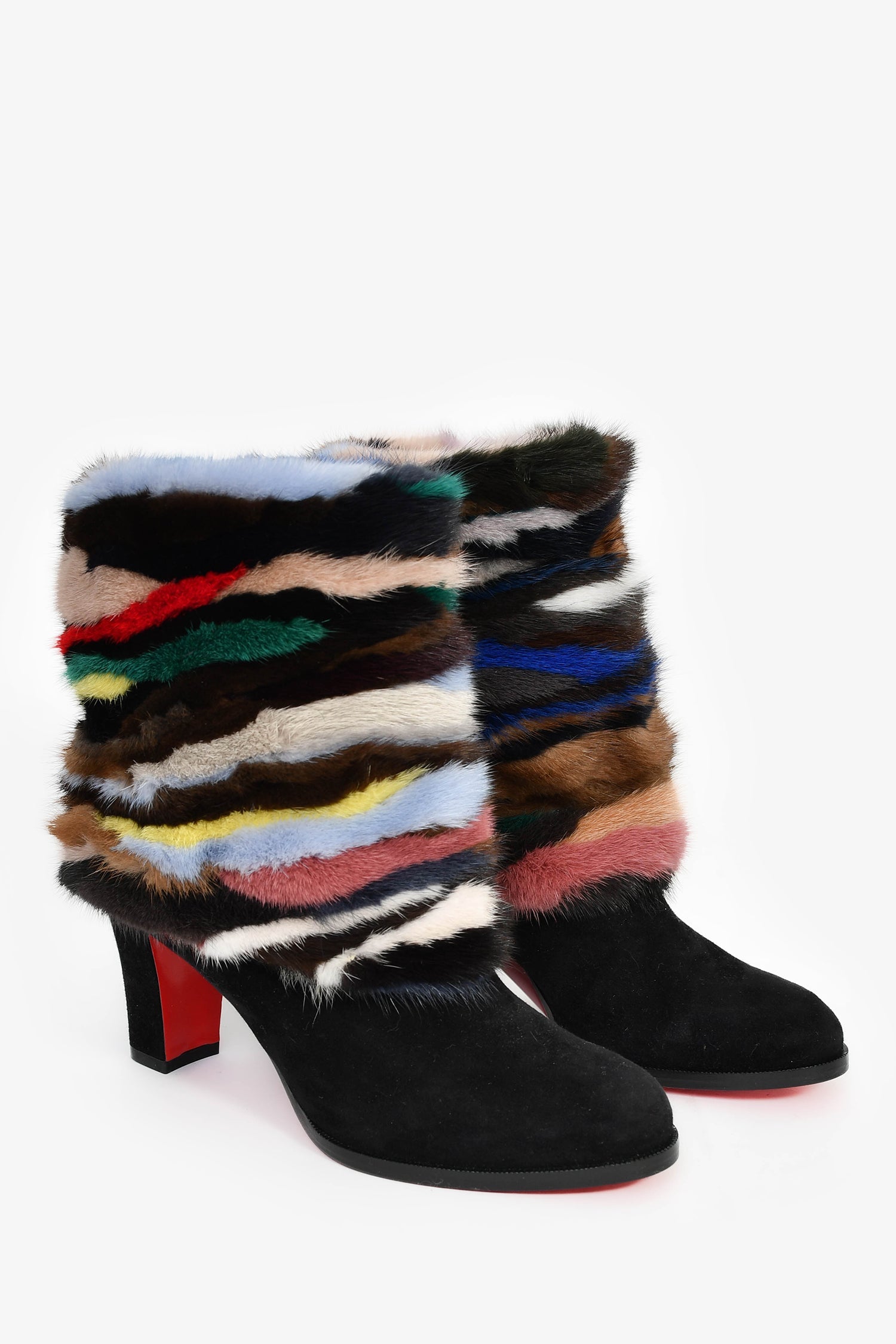Christian Louboutin Multioloured Mink Black Suede 'Alexandra 70' Boots Size 37