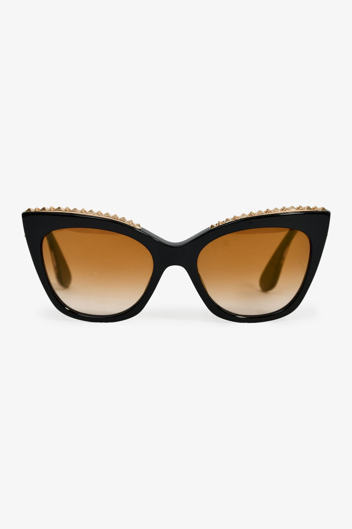Chrome Hearts Black/Gold Acrylic Cat Eye Sunglasses. Built-in nose pads. Gold-tone hardware.