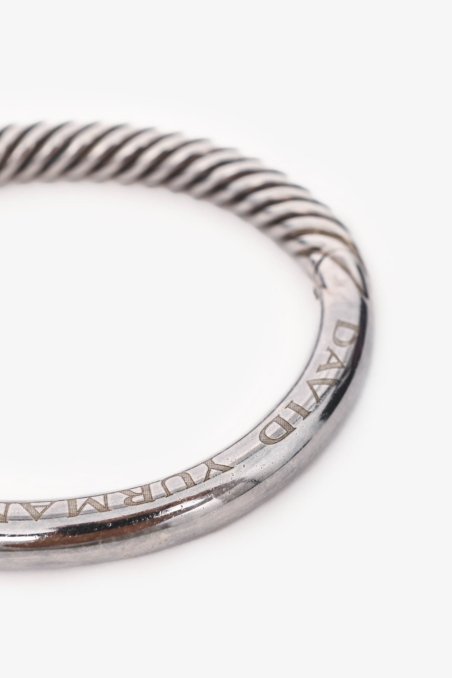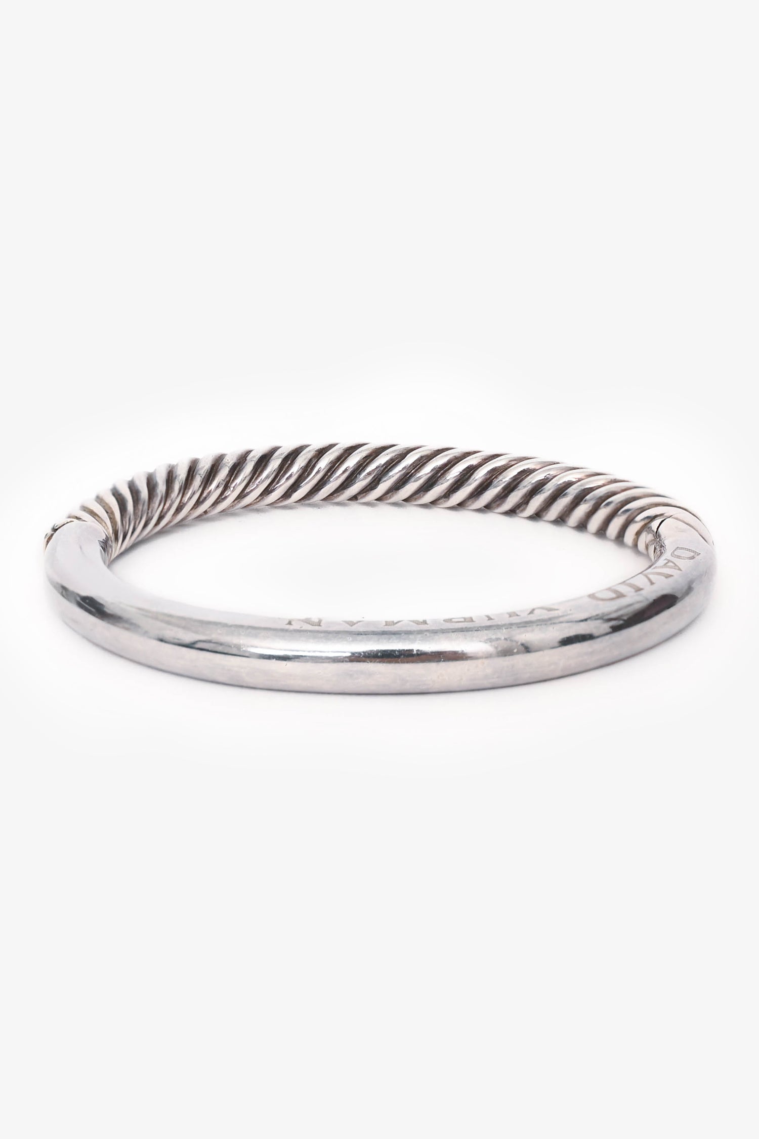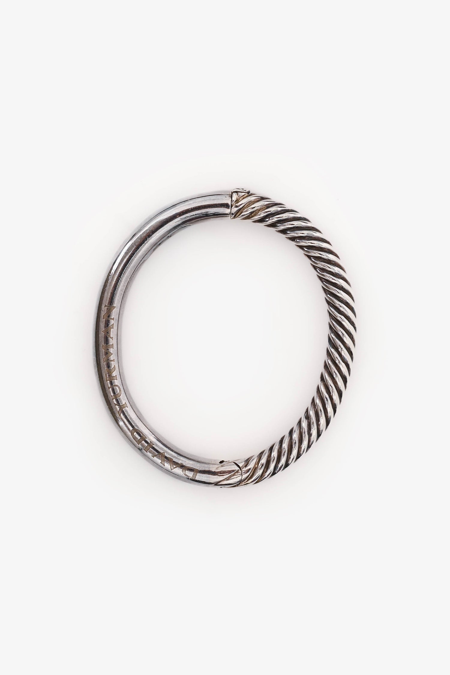 David Yurman Sterling Silver Cable Bangle Bracelet. Push closure. Sterling Silver hardware.