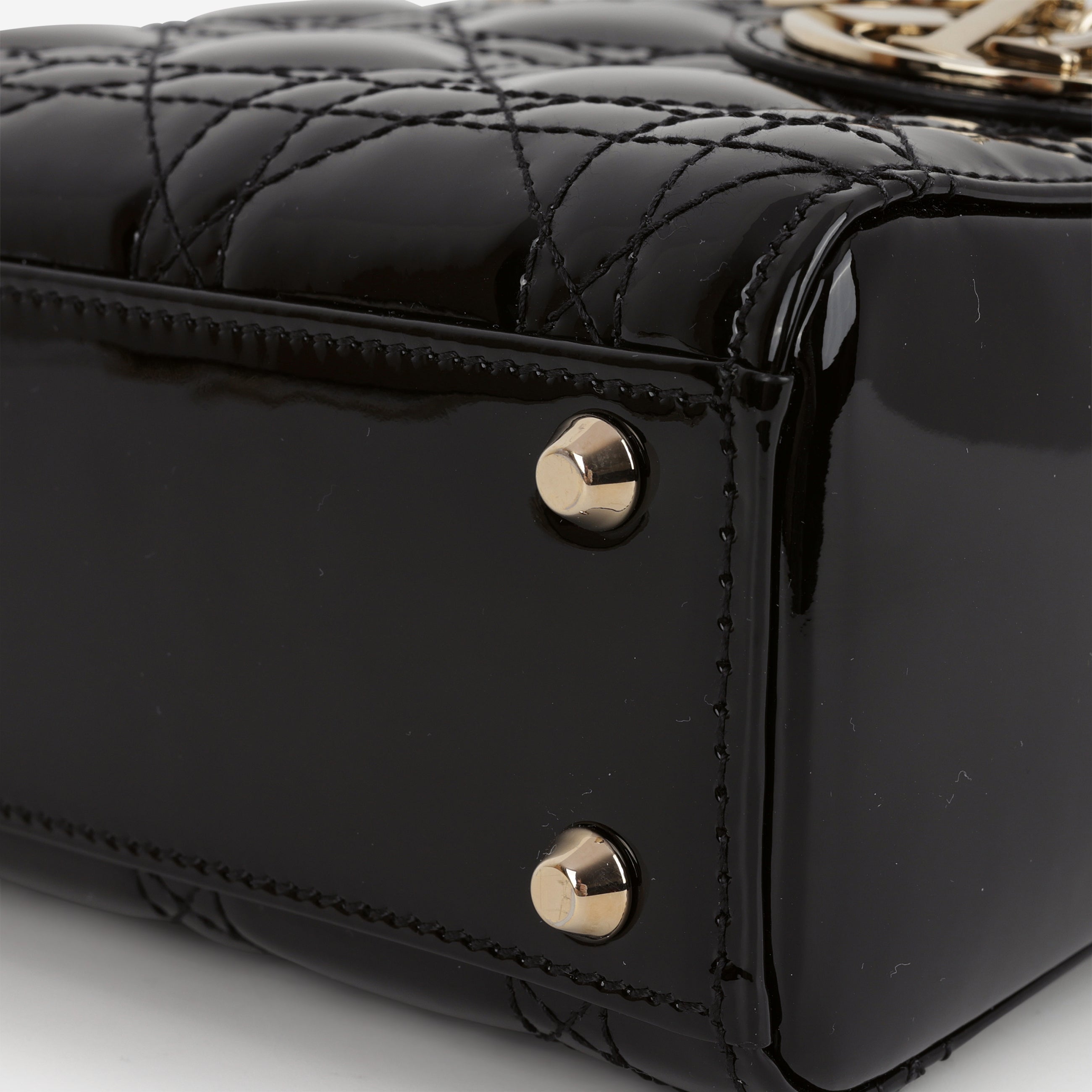 Dior Mini Lady Dior - Black Patent | Champagne Gold Hardware