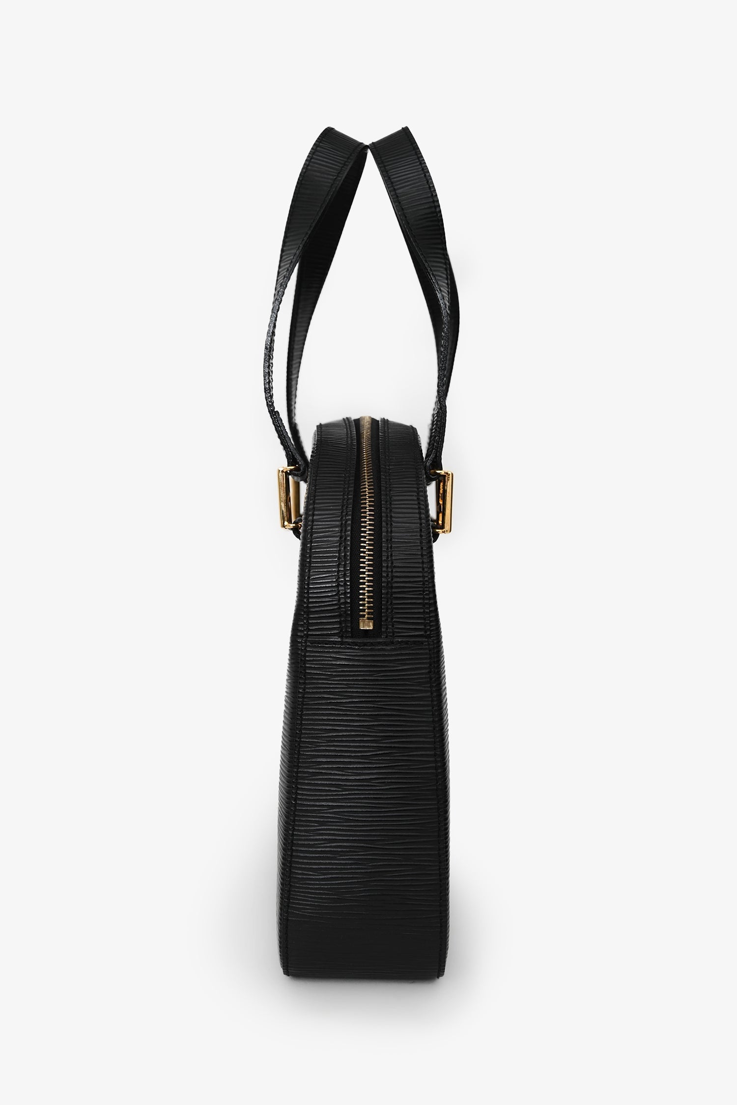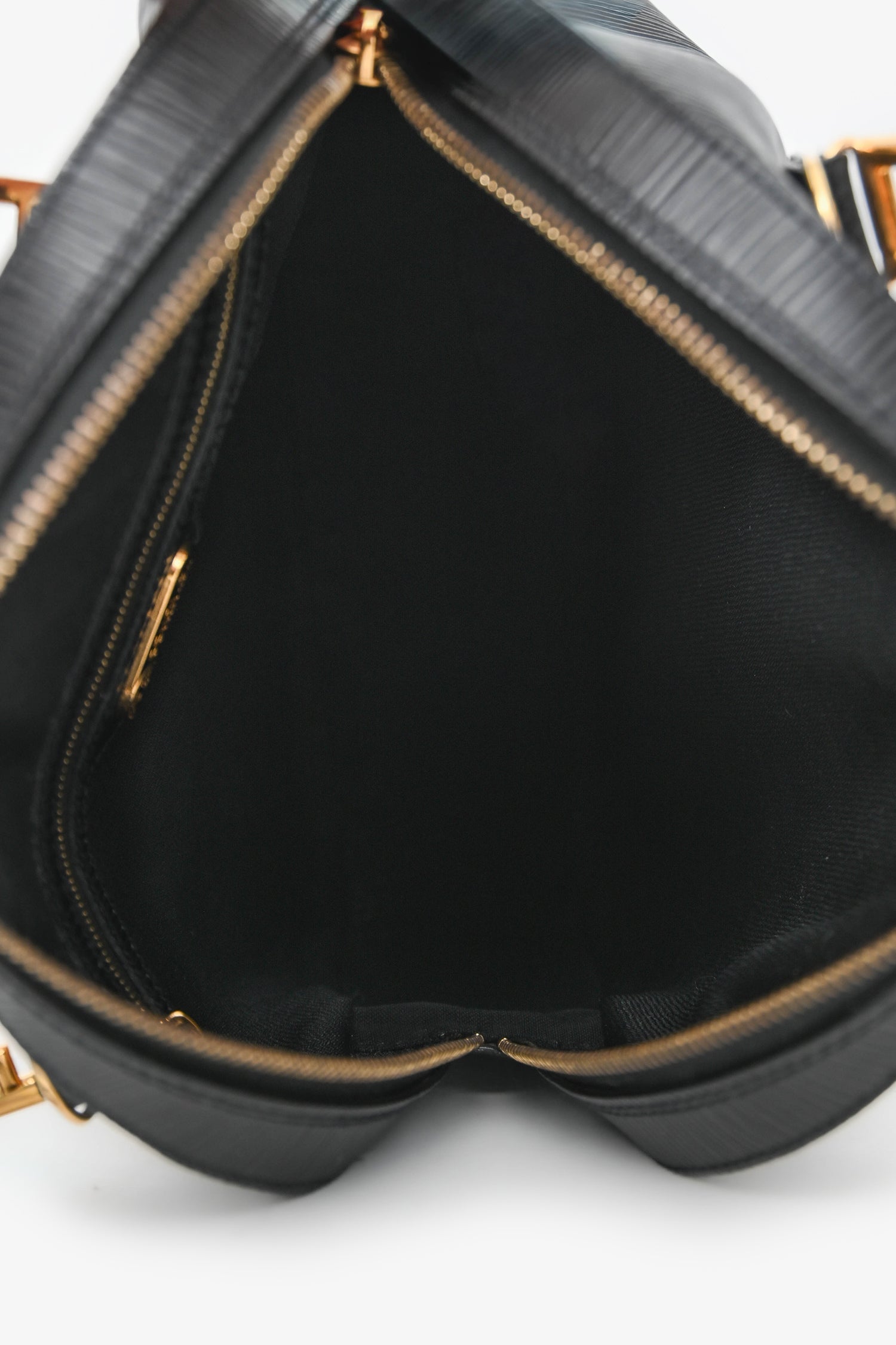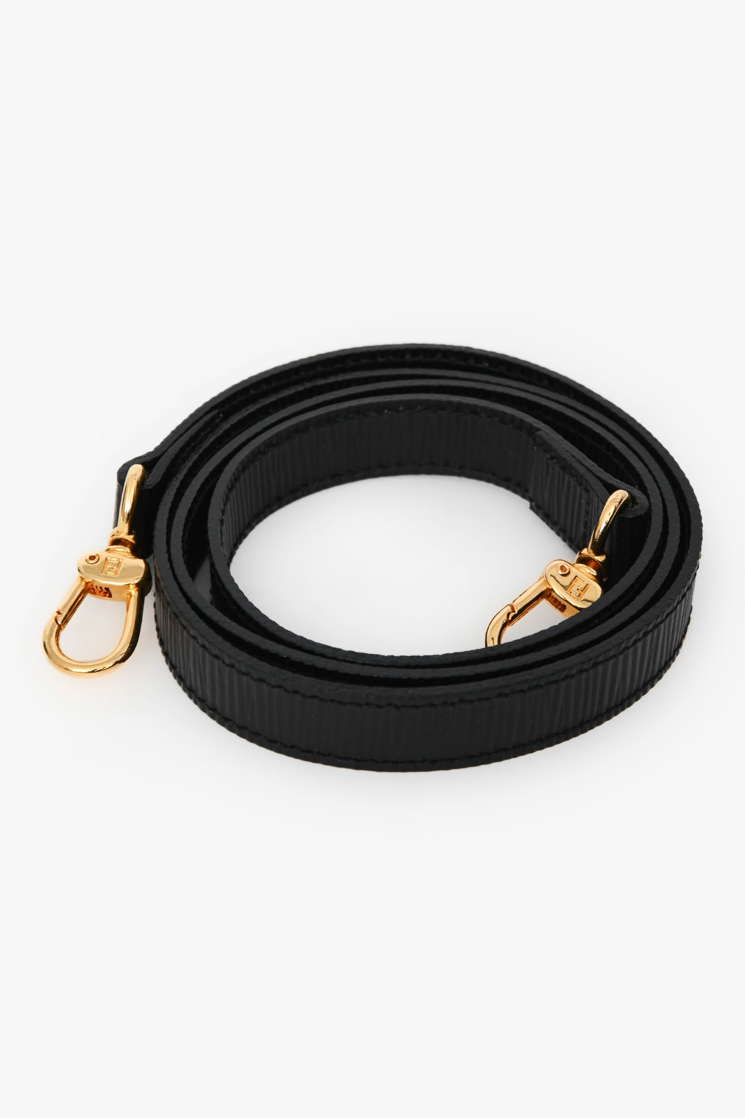Fendi Black Epi Leather 'FF' bag with Strap. Top zip closure. Twin top handles. Detachable shoulder strap. Single interior compartment with a zip pocket. Textile-lined. Gold-tone hardware. Tonal stitching.