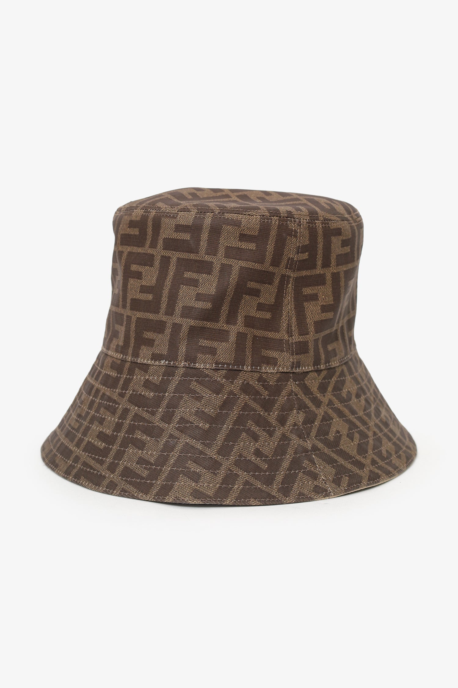 Fendi Brown Monogram Tech Fabric Hat. Slip-on. Lined interior. Tonal stitching.