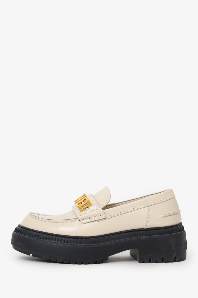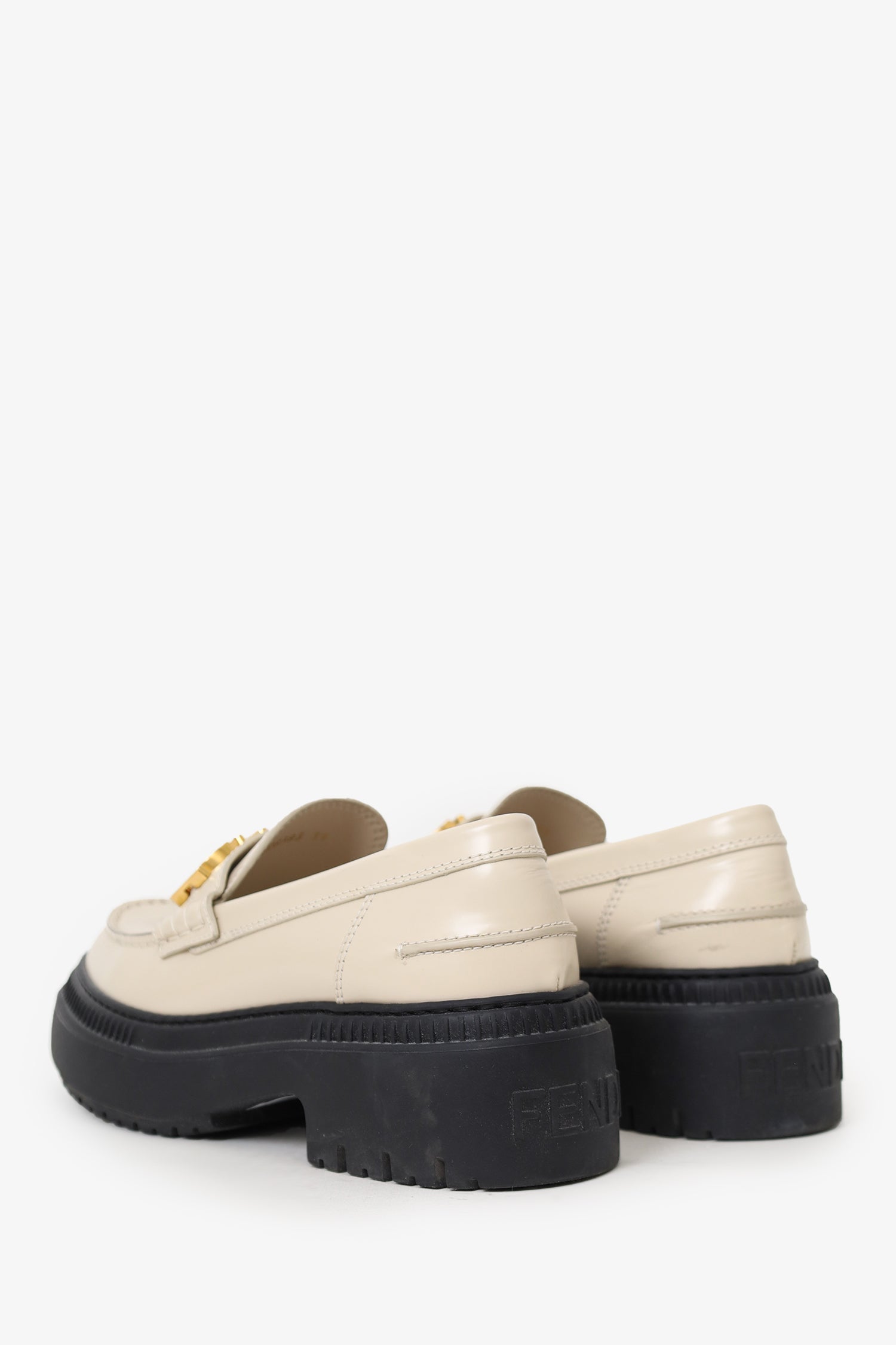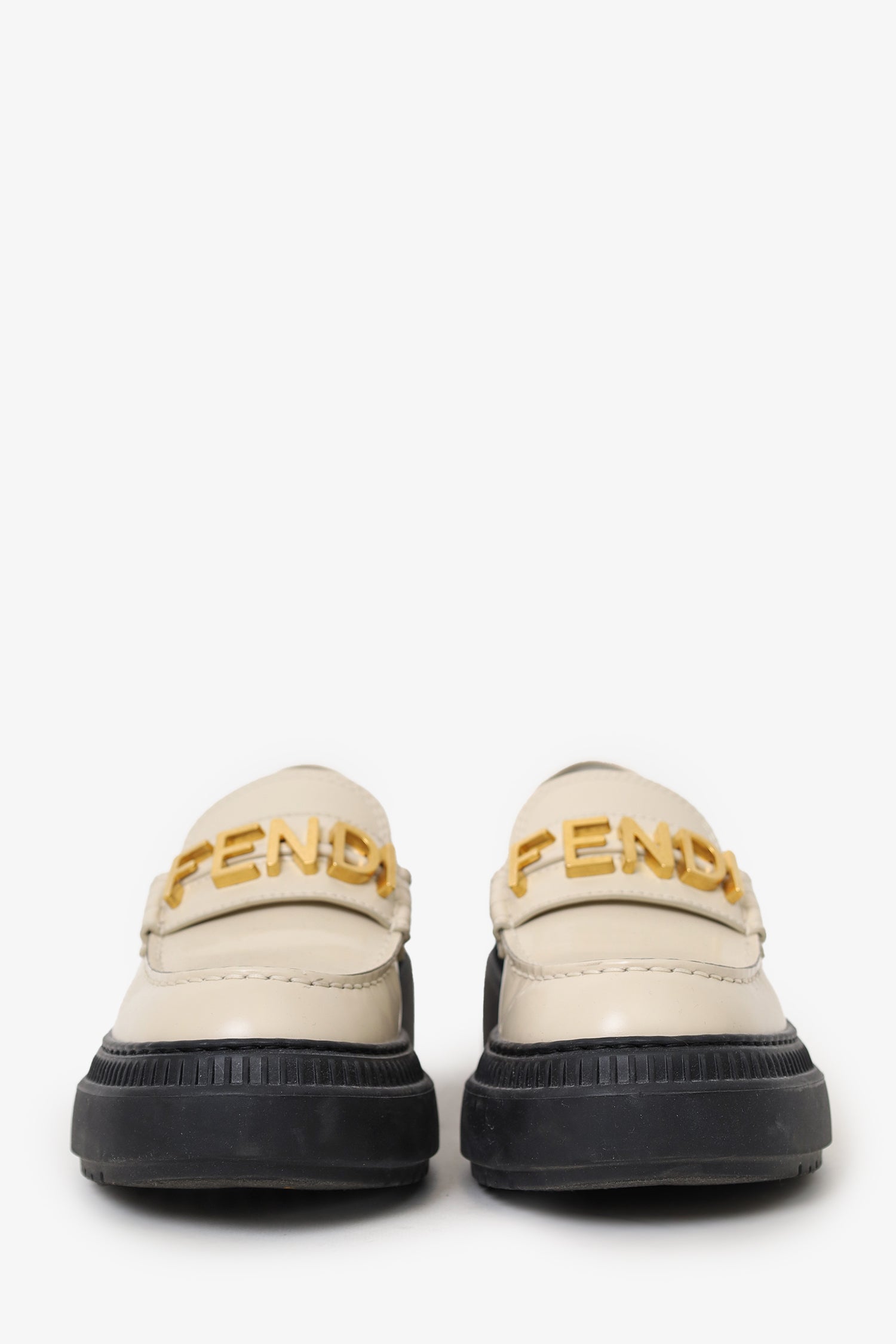 Fendi White Leather Fendigraphy Lug Sole Loafers Size 39