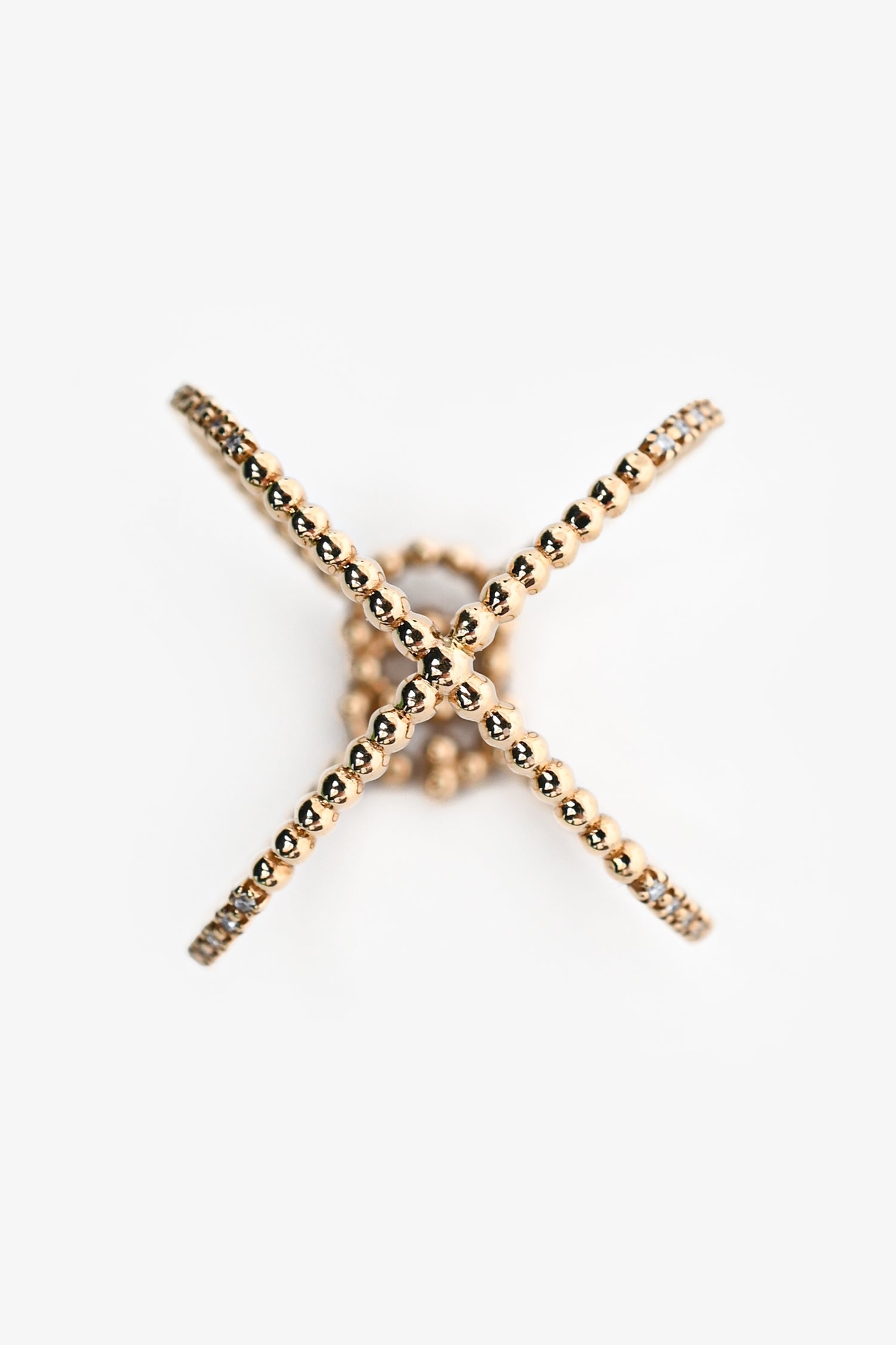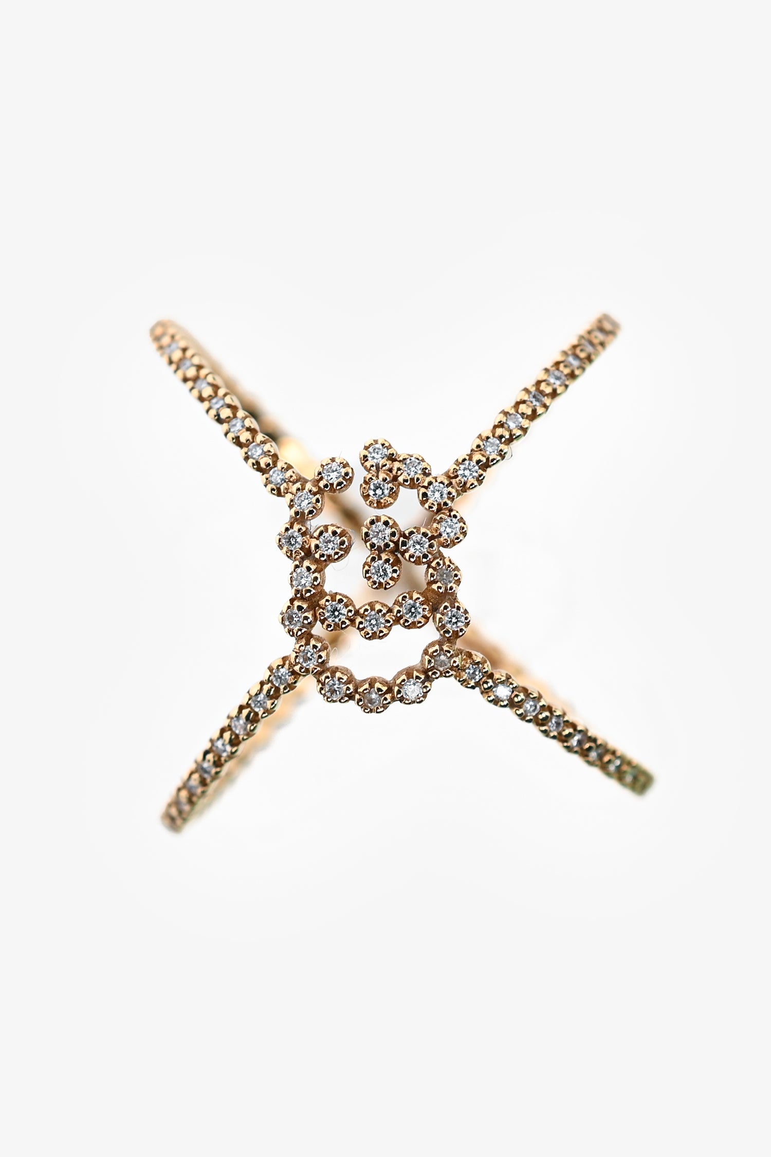 Gucci 18K Yellow Gold Diamond Set GG Running X Ring.
