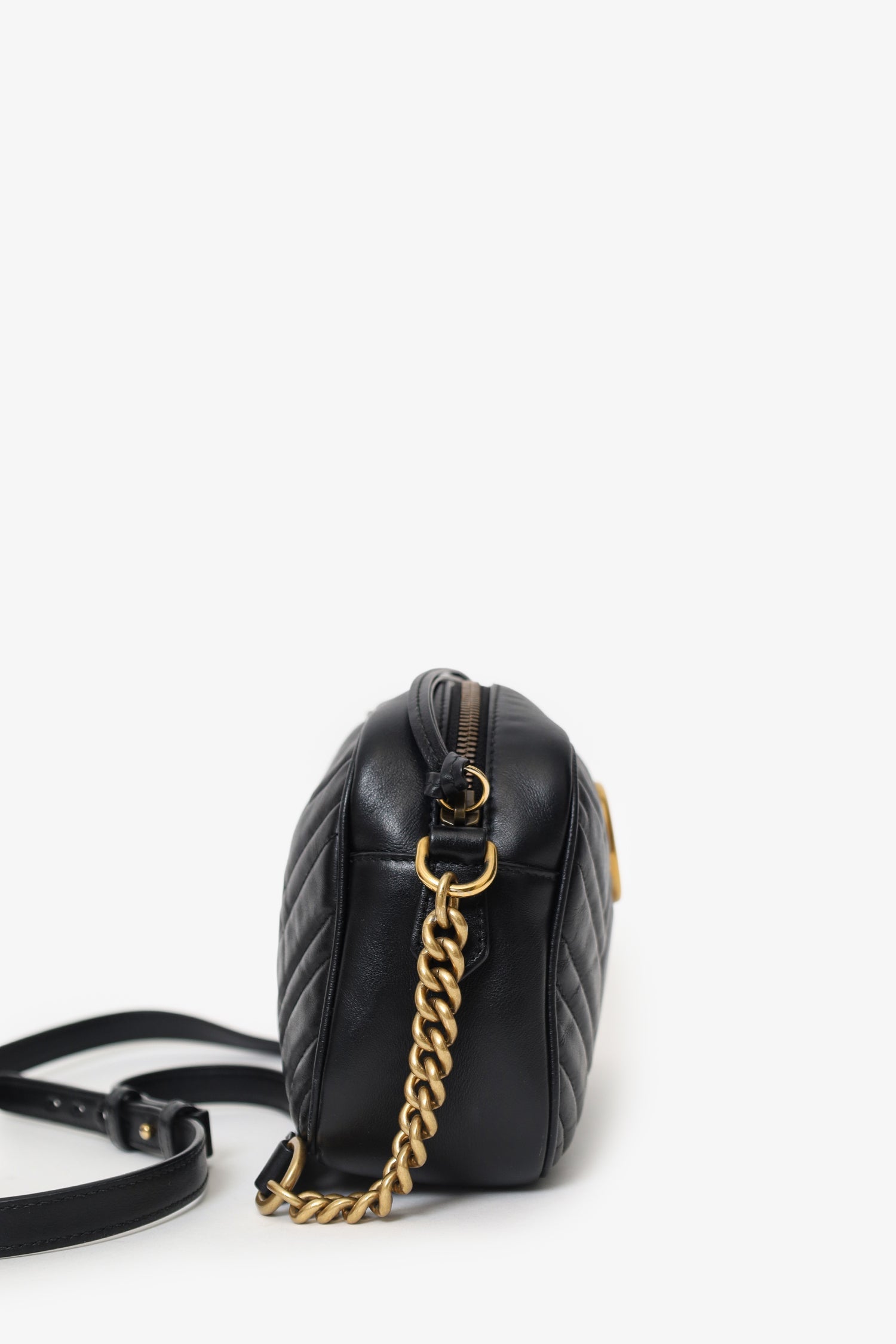 Gucci Black Leather Small Marmont Matelasse Camera Bag